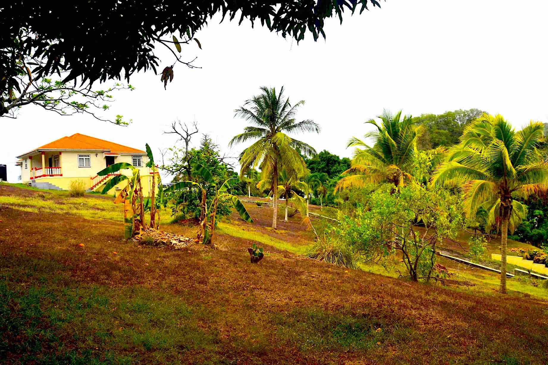 8 acres of land, with mature vegetation, a range of species, including mango, plum, banana, avocado, breadfruit, coconut.