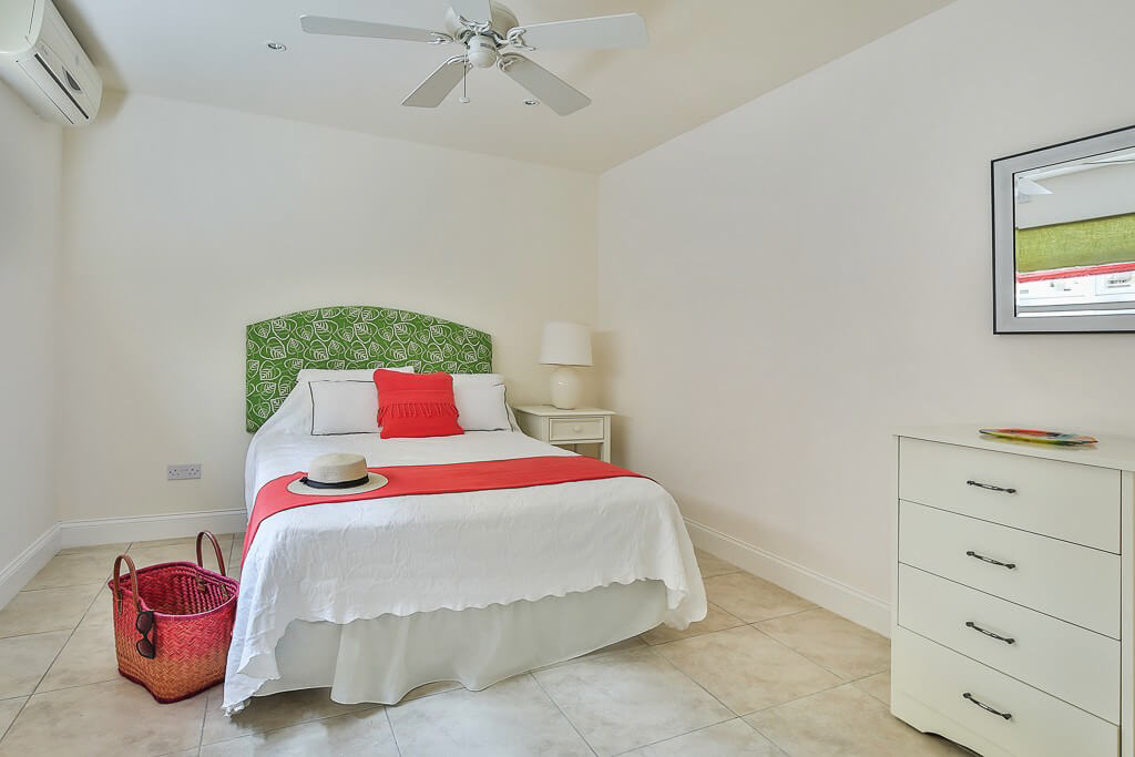 King-size bed, fitted wardrobes, hardwood floors, cathedral ceiling, A/C and overhead fan. Balcony with views of the Atlantic Ocean and Martinique. Large ensuite with full bath, walk-in shower and a two basin vanity unit.