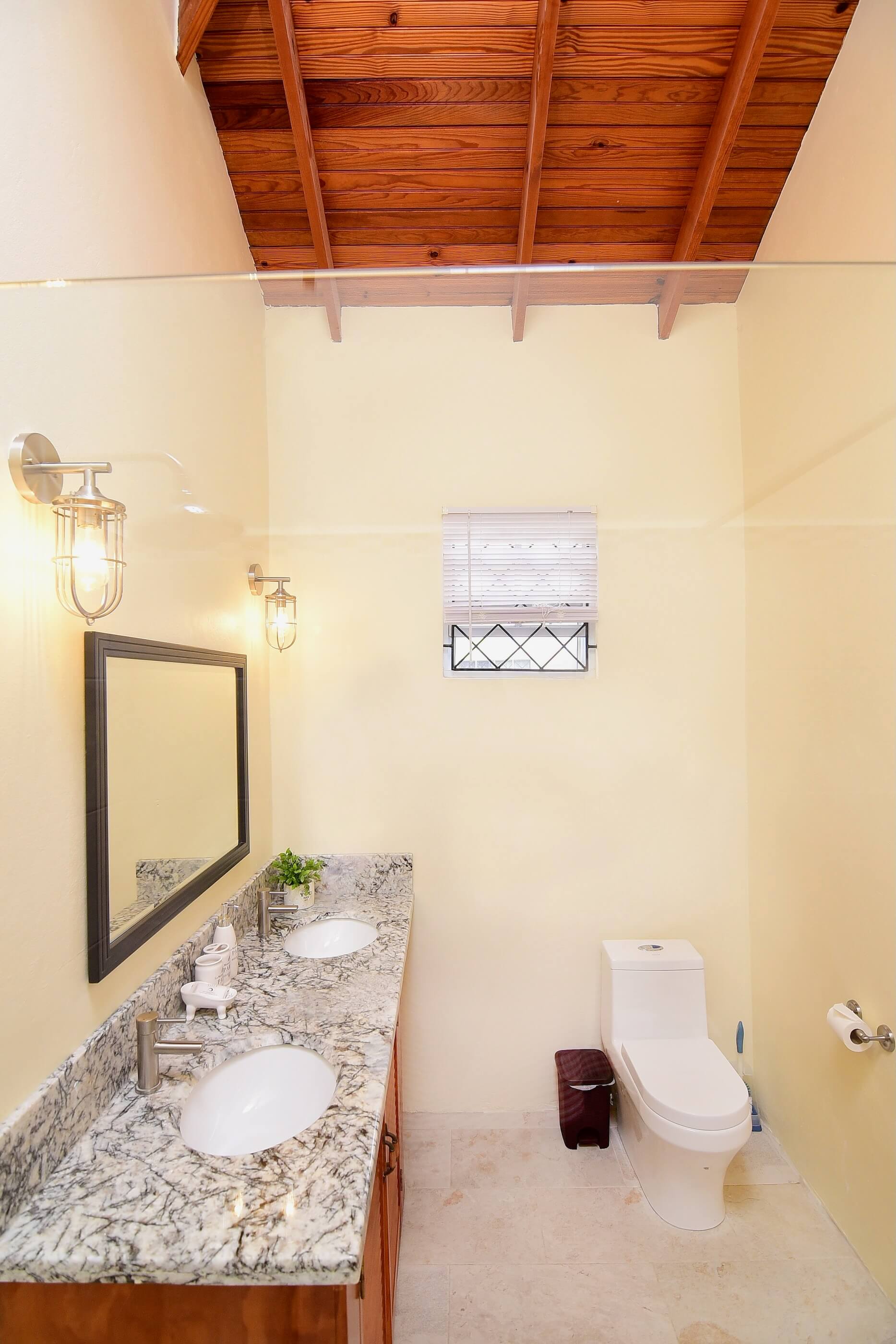 - Three double bedrooms with A/C, sharing a family shower room with WC and twin basins