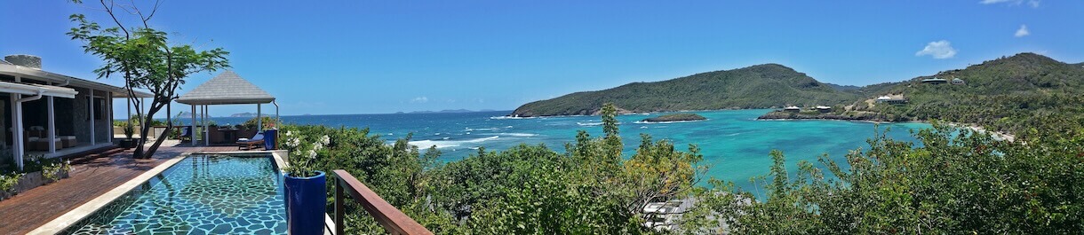 - Fascinating views across Crescent Bay, Crown Point, Spring Point to the south and the islands of Baliceaux & Battowia to the east. }