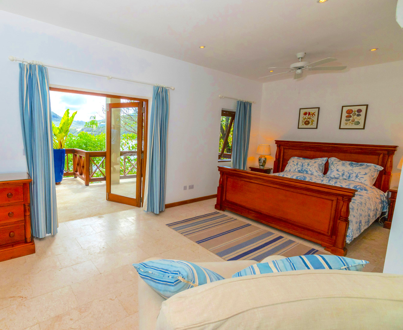 - Fascinating views across Crescent Bay, Crown Point, Spring Point to the south and the islands of Baliceaux & Battowia to the east. }