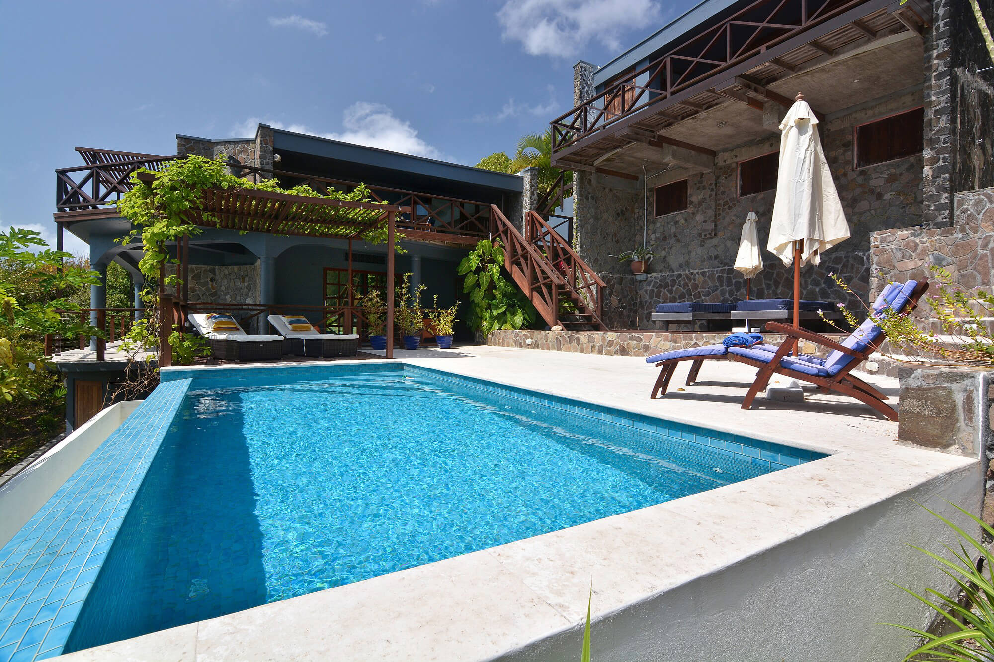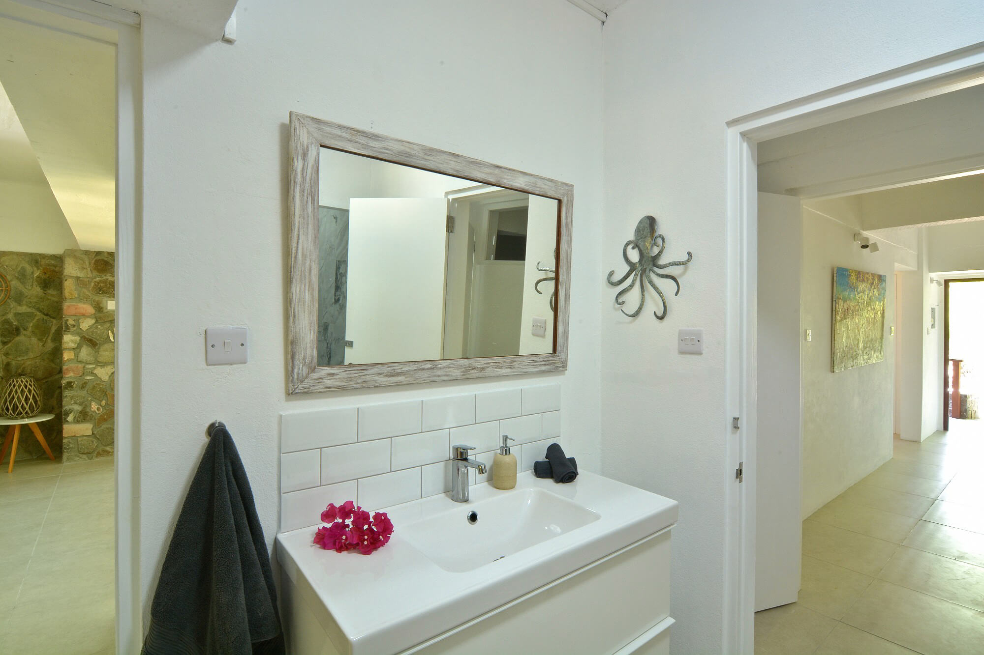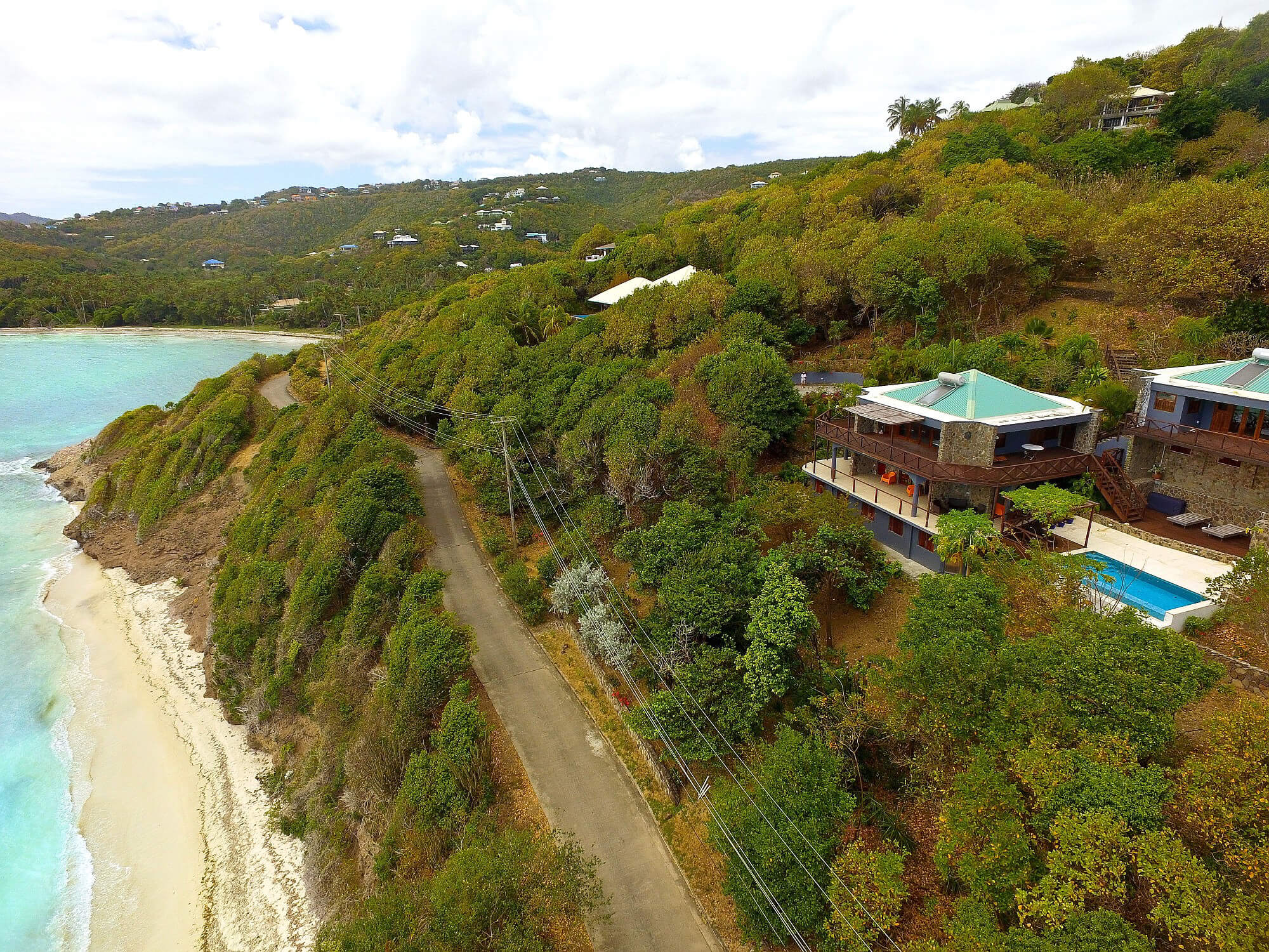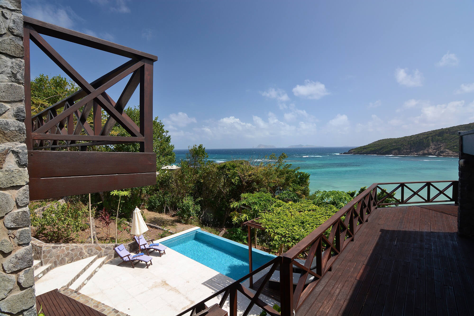 Crown Point House is accessed via a private driveway from Lower Crown Point Road, and sits amidst 1.35 acres of natural tropical woodland in an elevated position with tremendous views over the Caribbean Sea and islands of Battowia and Balliceaux. The house may also be approached from the Lower Government Road.