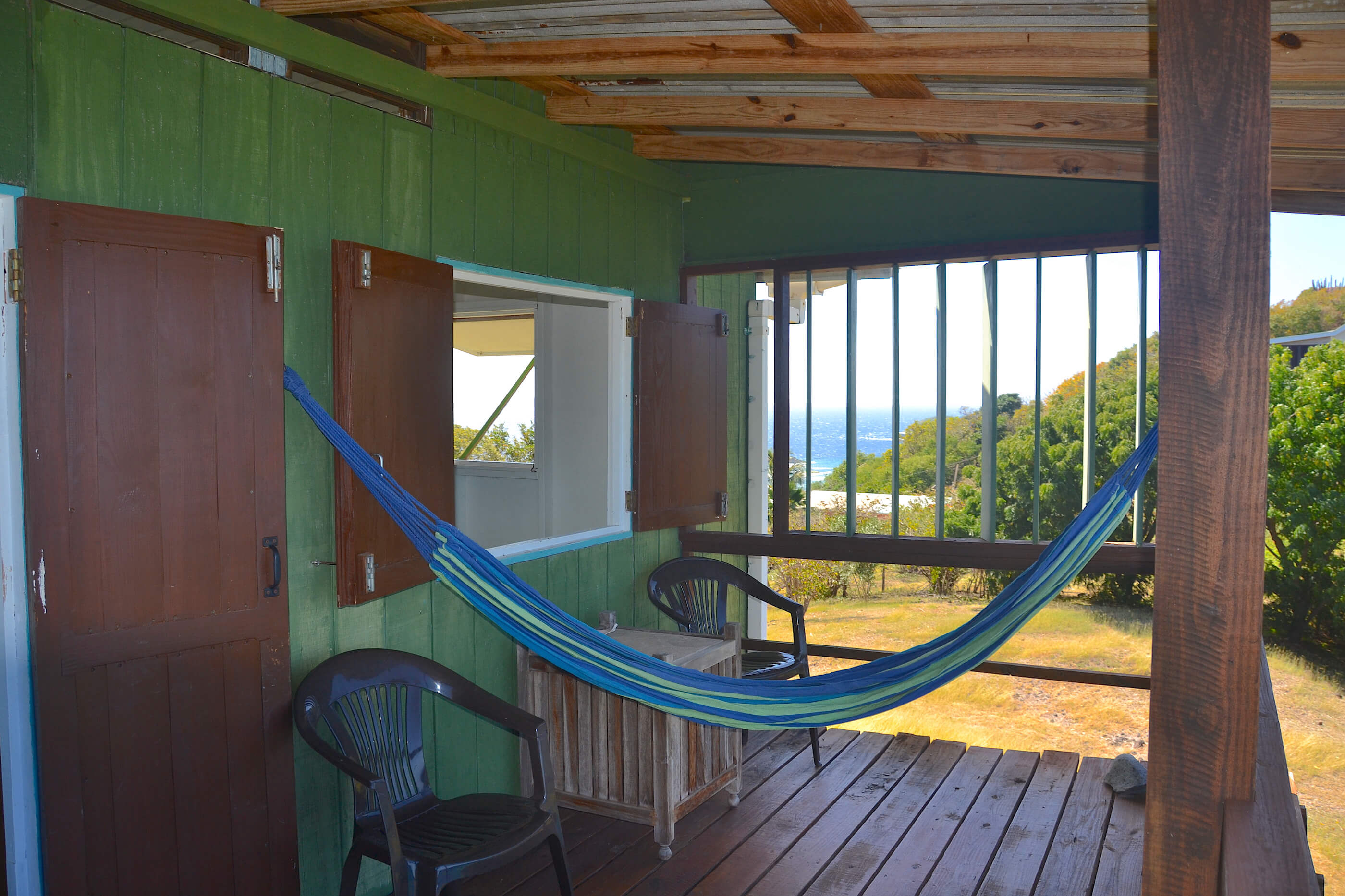 Building three, a small step up from the patio,contains a sweet second bedroom.