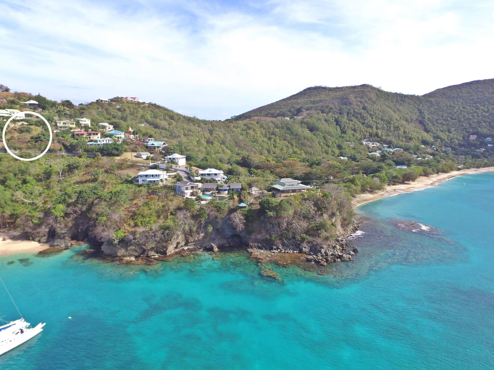 The land is in a great location, on the ridge between two of the most beautiful beaches in the Caribbean. The views from the plot are panoramic and out over the whole of Admiralty Bay and the Caribbean ocean beyond.