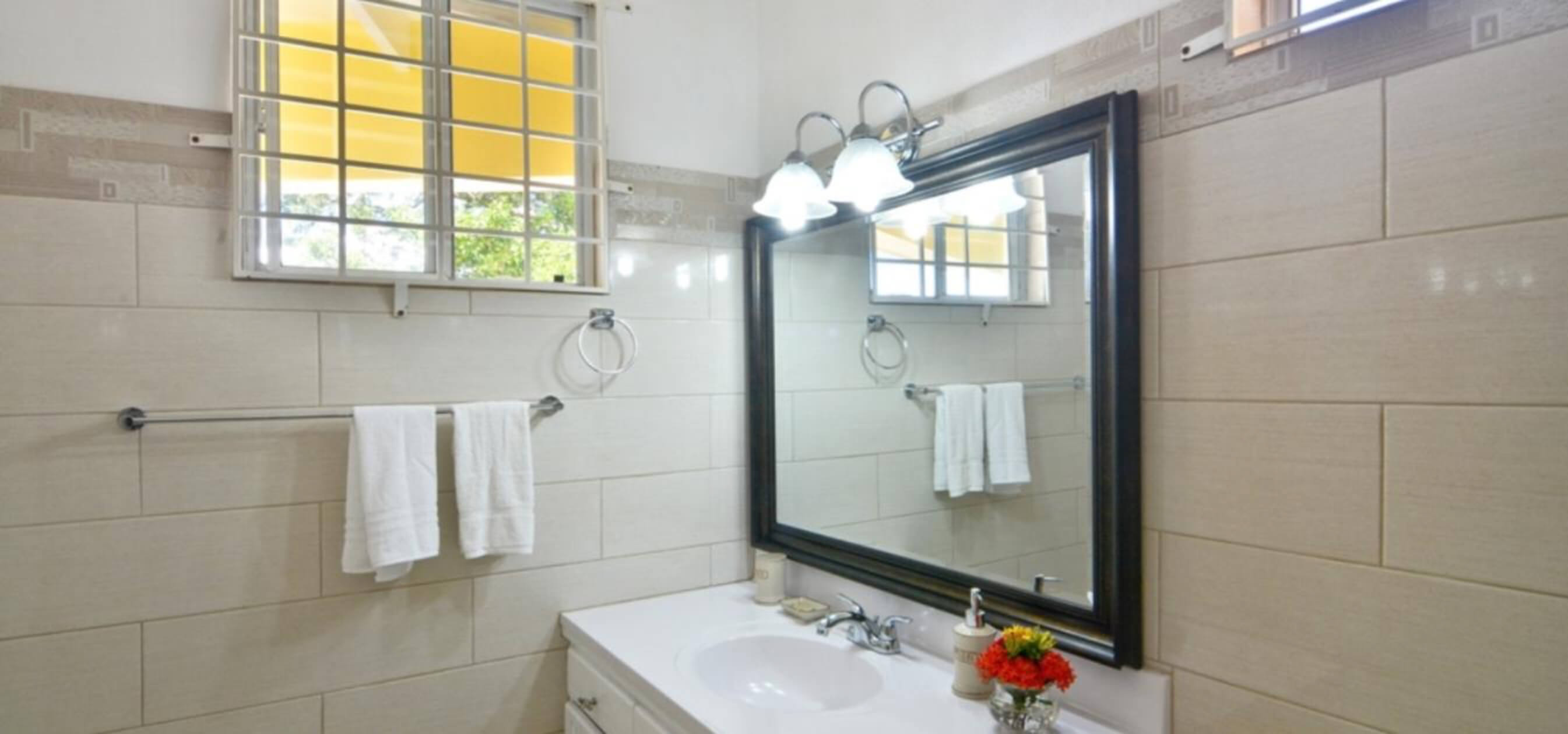 This villa has traditional colonial charm and elegance with sweeping verandas at the front and rear. Allamanda has been painted in a cool buttermilk and throughout the property one can find a subtle geometric pattern in areas such as the tiled entrances and bathroom styling.