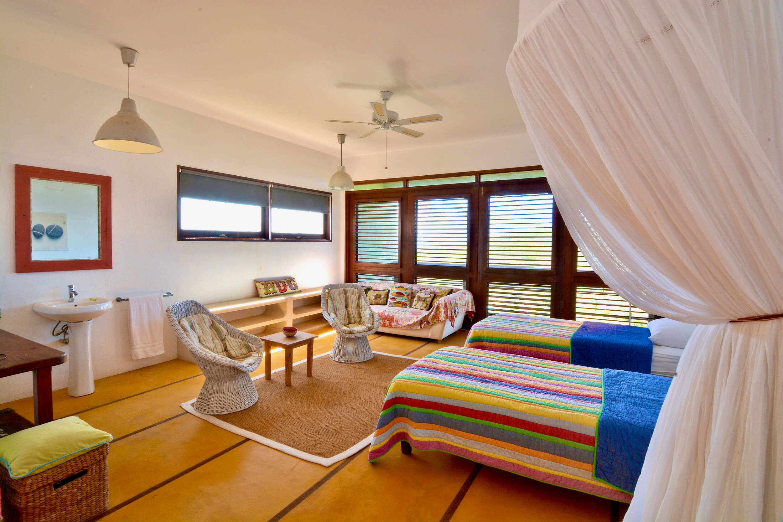 - AC in 3 x leeward guest rooms,Mangwana is designed to be cool, with prevailing breezes and shaded spaces }