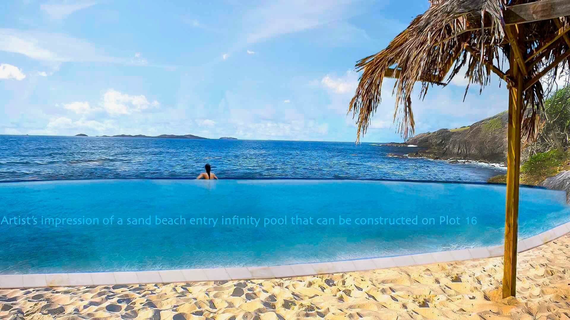 - Location ideal for installing a sandy beach area in front of an infinity pool set back from the shore }