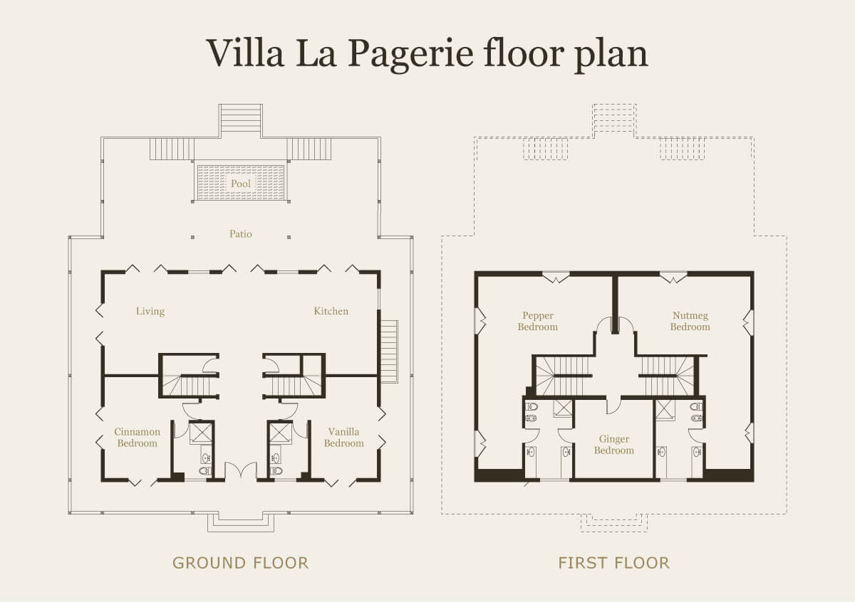 With five bedrooms and an independent studio flat, Villa La Pagerie is the ideal place to connect with family, friends or even just that special someone. Each bedroom has a different name and offers either king, queen or twin beds. All the rooms have sumptuous furniture, glossy tiled floors, ceiling fans, luxury bed linens and en suite bathrooms. All with contemporary fittings and lovely views through cool louvered windows. 1 Bedroom ("Ginger Suite") has air conditioning.
