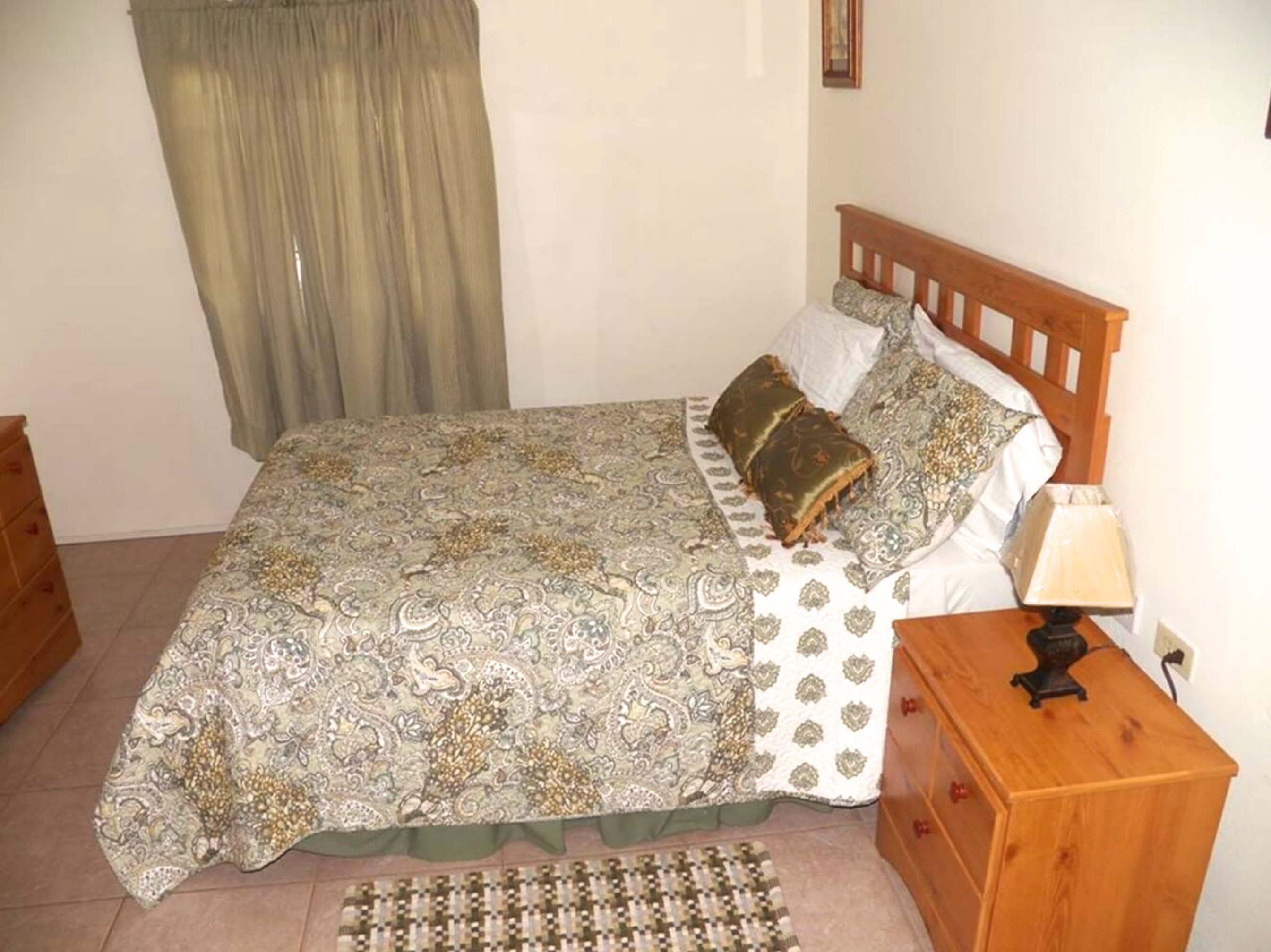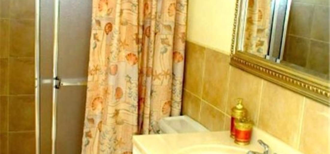 There are 2 lovely bedrooms each with AC, a double bed, mirrored chest of drawers, lamp, telephone, closet,bedside table, clock radio and 19' cable TV. The bedrooms share one bathroom.