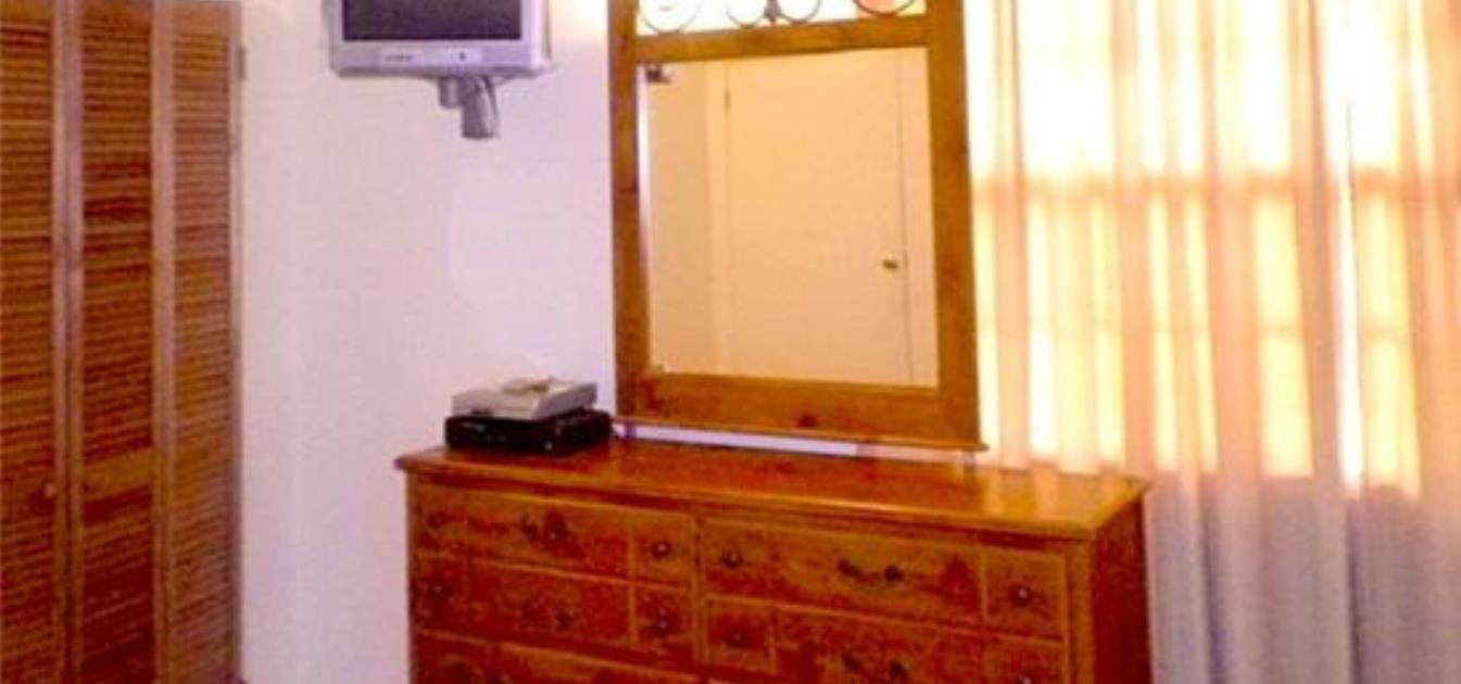 There are 8 lovely bedrooms each with AC, a double bed, mirrored chest of drawers, lamp, telephone, closet,bedside table, clock radio and 19' cable TV. The bedrooms share one bathroom.
