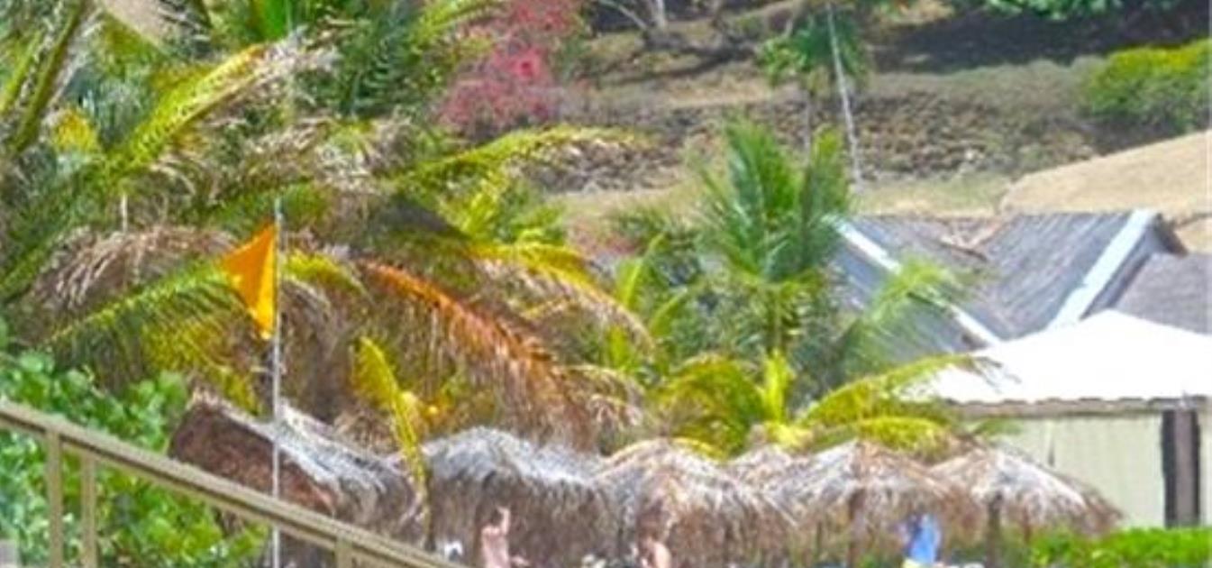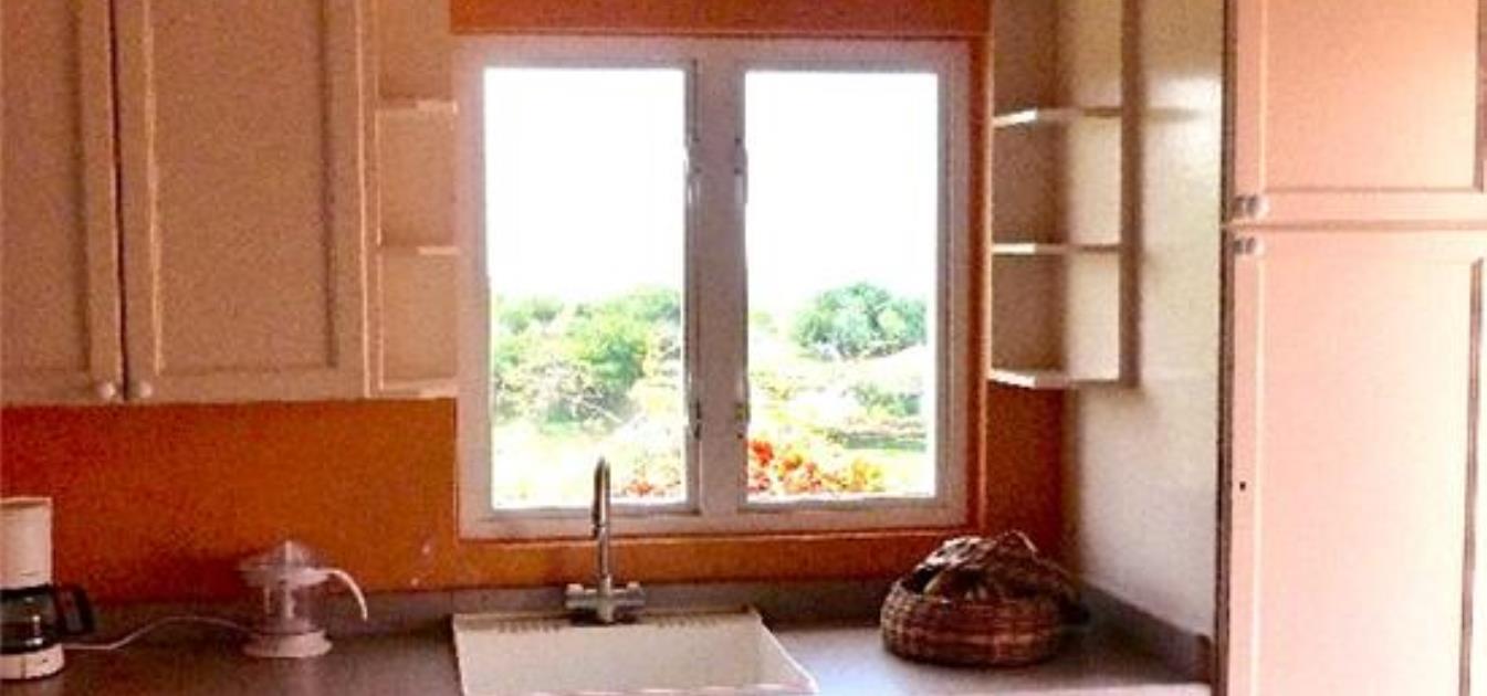 The beach is about a 5 minute walk away. It is not crowded. The beach has a very exclusive feel as it is also that used by the exclusive Sandals resort guests. Pinquin cottage is on a hilltop therefore the view is panoramic. It looks down on the Sandals resort and the neighboring area. There are not many houses nearby