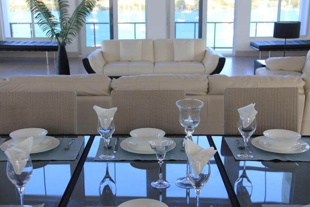 The bedrooms are pristine with masses of space, cool tiled floors, AC, blinds, chic minimal furniture and views over the bay.