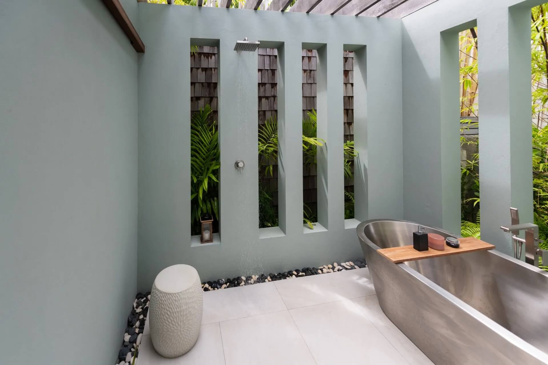 - The Boathouse Villa – King bed, open-air shower & tub, garden grill