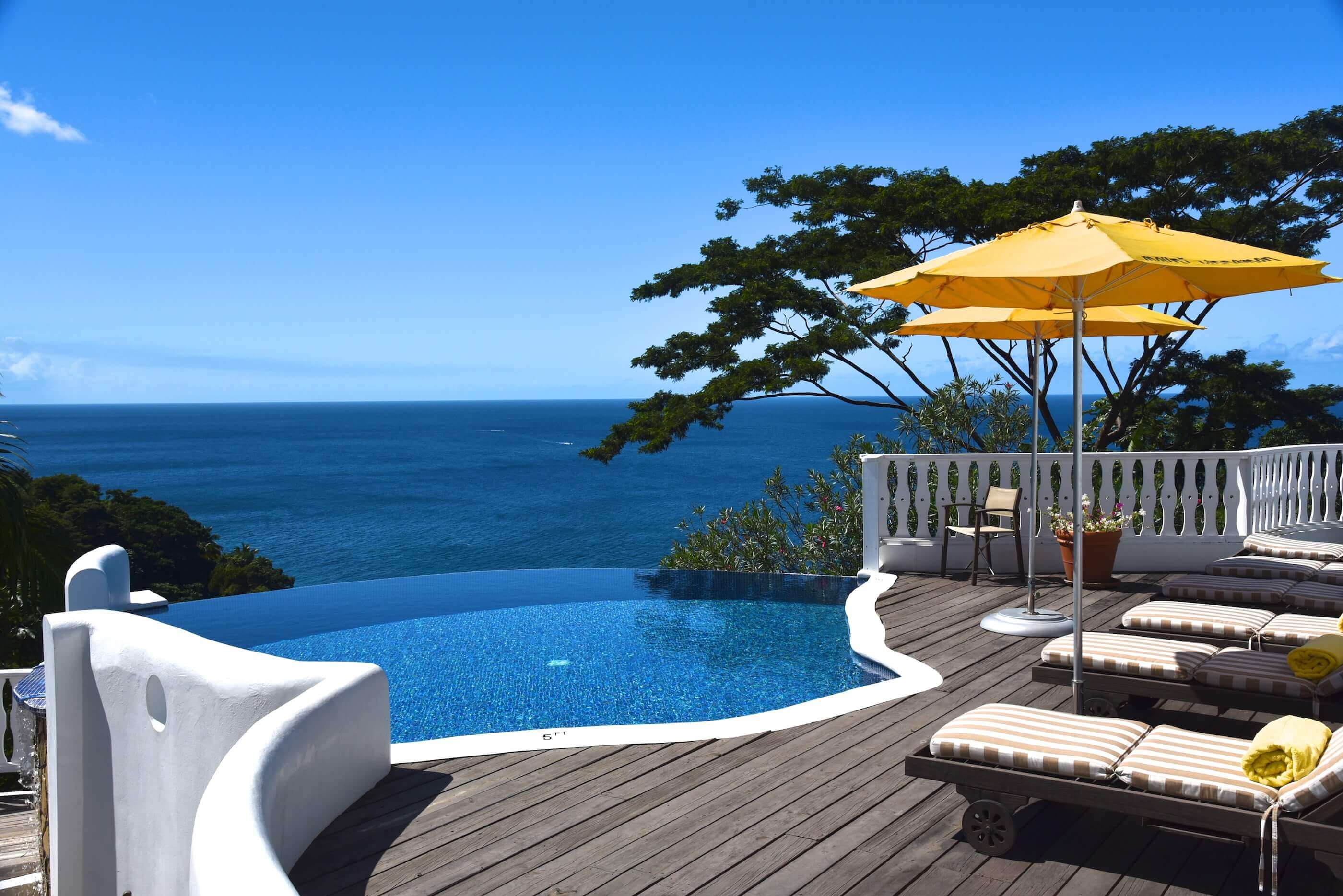 With a sheltered and elevated location on the West Coast of Grenada, this very rare and historic plantation enjoys cool sea breezes, amazing sunsets, views over the lush tropical grounds, Grenadian coastline and the wonderful Caribbean Sea. The jaw dropping double infinity pools and sun deck, just has to be seen to be believed.