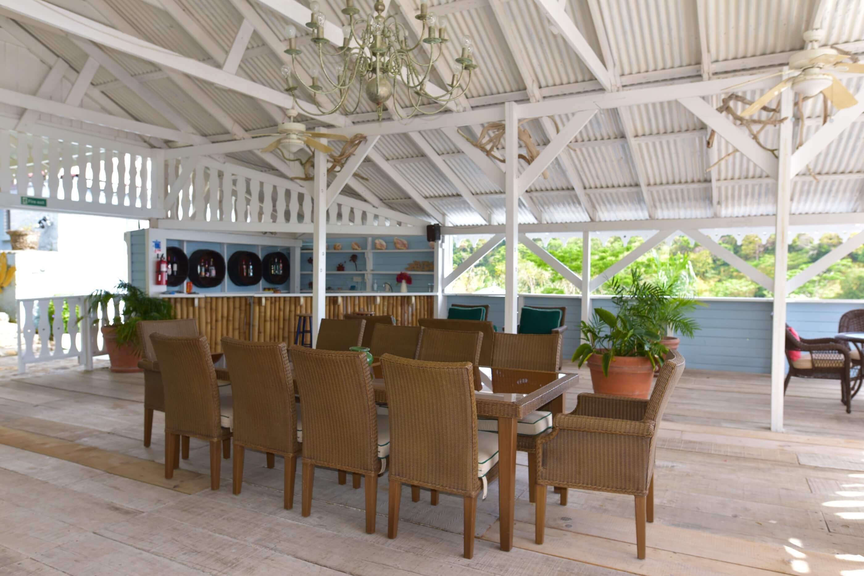 Adjoins the stunning double infinity swimming pools and provides the perfect dining space for meals, complete with the 'Little Bamboo Bar'. This is where you can relax after exploring Grenada or just relaxing here at the Mount Edgecombe Plantation. The views and sunsets need to be experience.