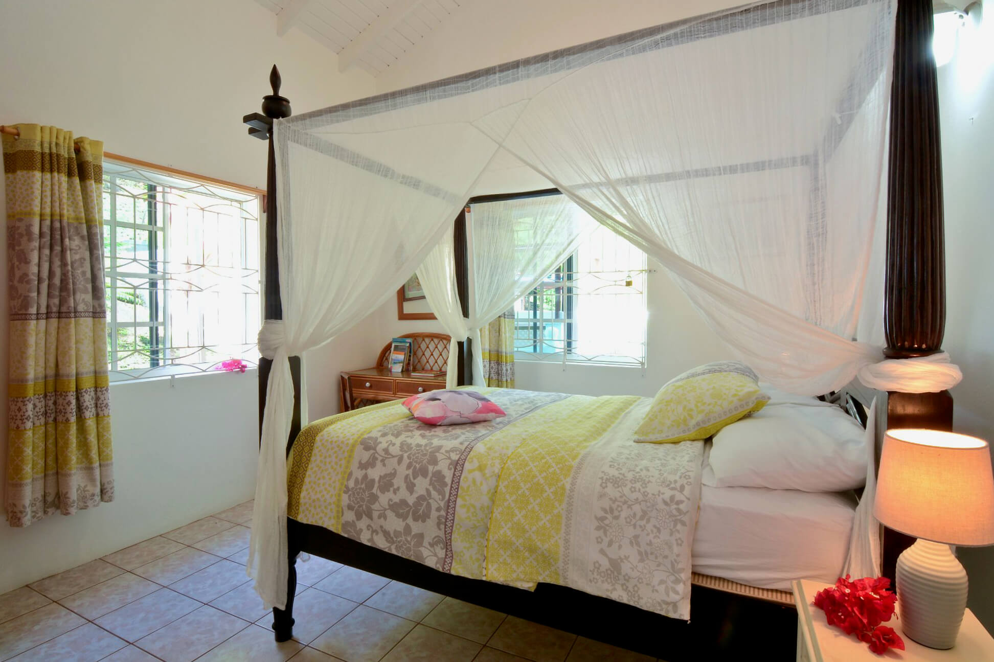 The Main bedroom contains a four posted bed, en suite shower This room is air conditioned and also has ceiling fan so you can be assured a comfortable night no matter your preference.