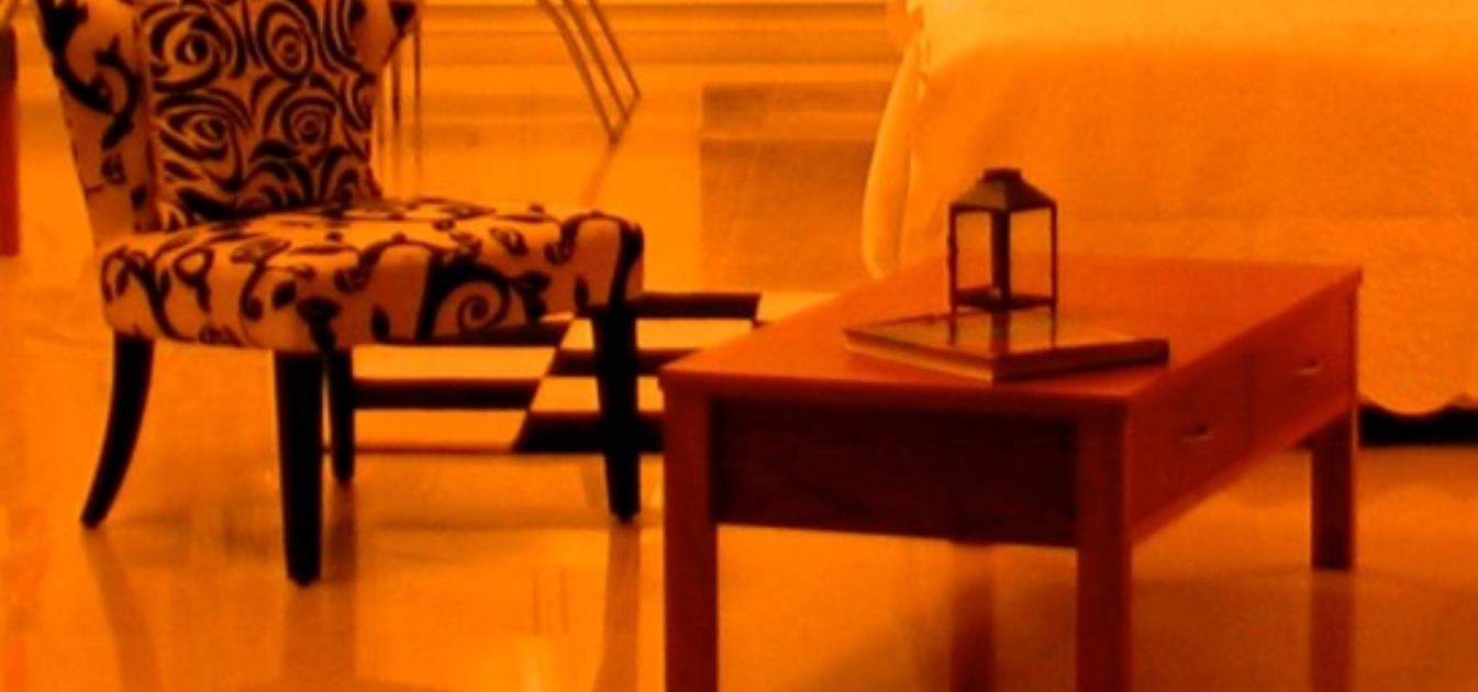 Crisp cooling interior of white walls and modern gloss tiled floor. Tasteful images and lighting along with stylish and comfortable high quality furnishings.