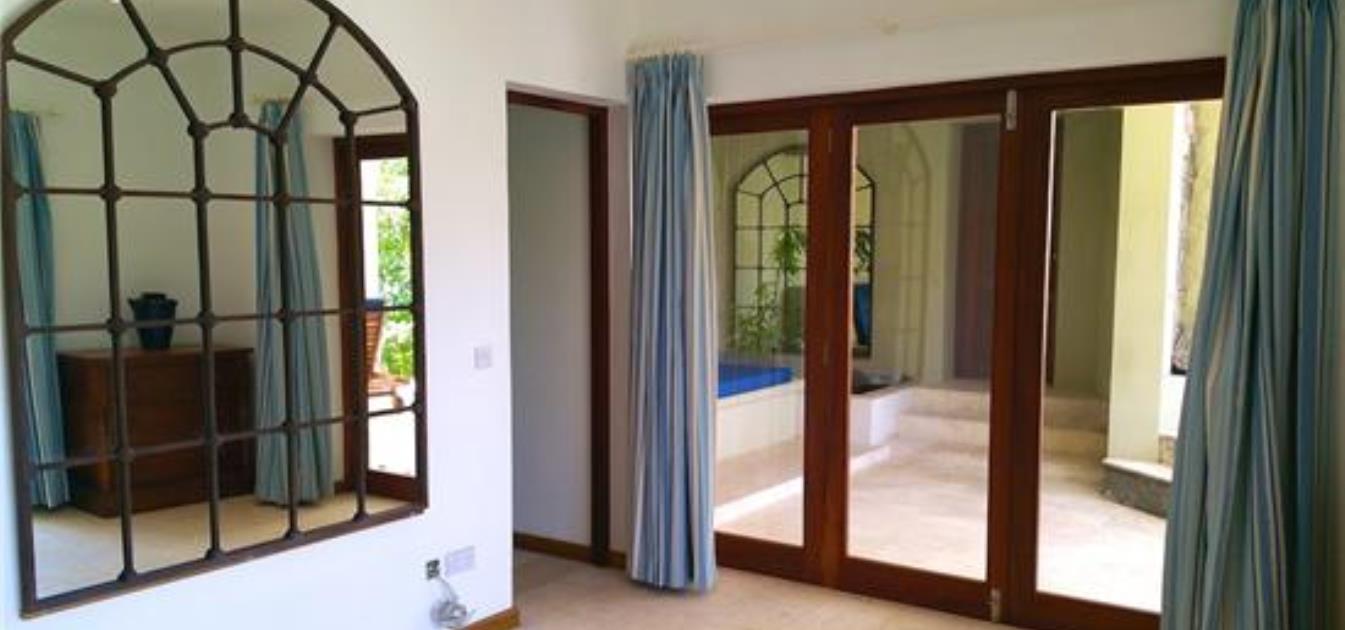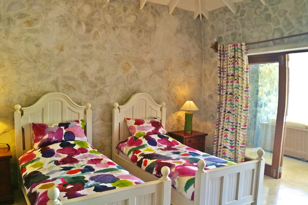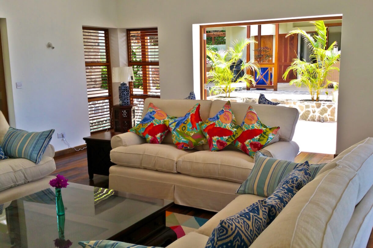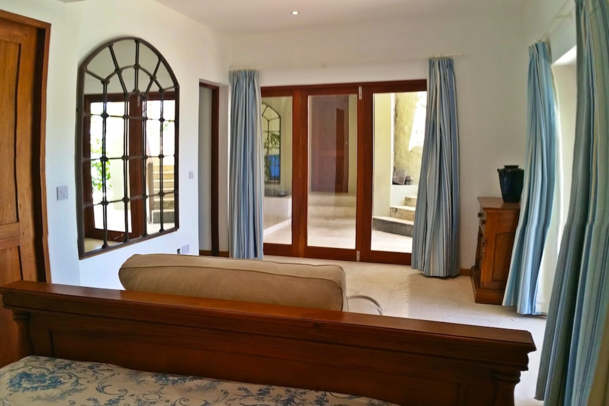 Crescent Beach Villa features 2 double bedrooms and a twin bedroom, all have en suite shower rooms. The master bedroom with Super King Bed has a delightful outdoor shower. The second double contains a Queen sized bed. The third central bedroom contains 2 twin beds.