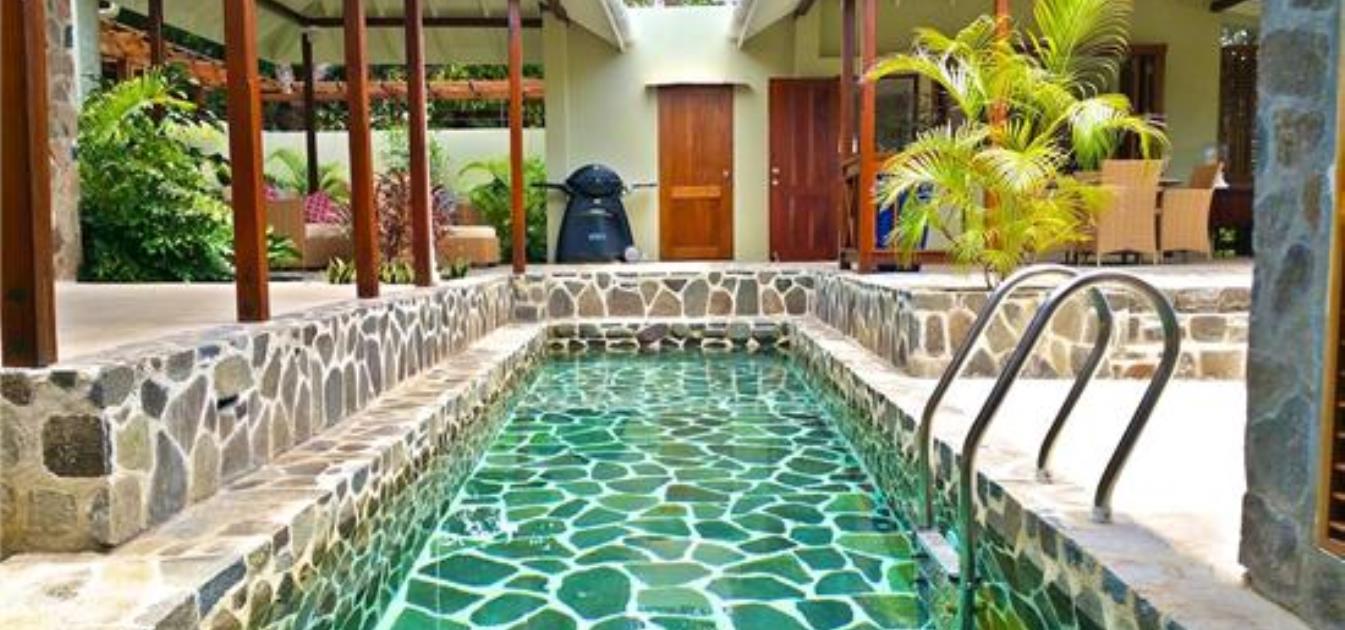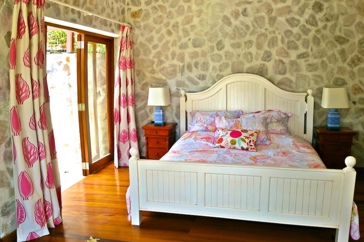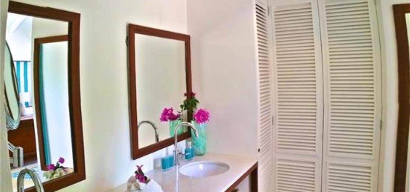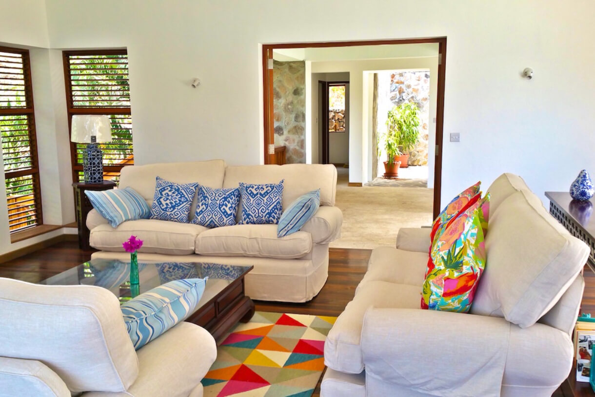 Crescent Beach Villa features 2 double bedrooms and a twin bedroom, all have en suite shower rooms. The master bedroom with Super King Bed has a delightful outdoor shower. The second double contains a Queen sized bed. The third central bedroom contains 2 twin beds.