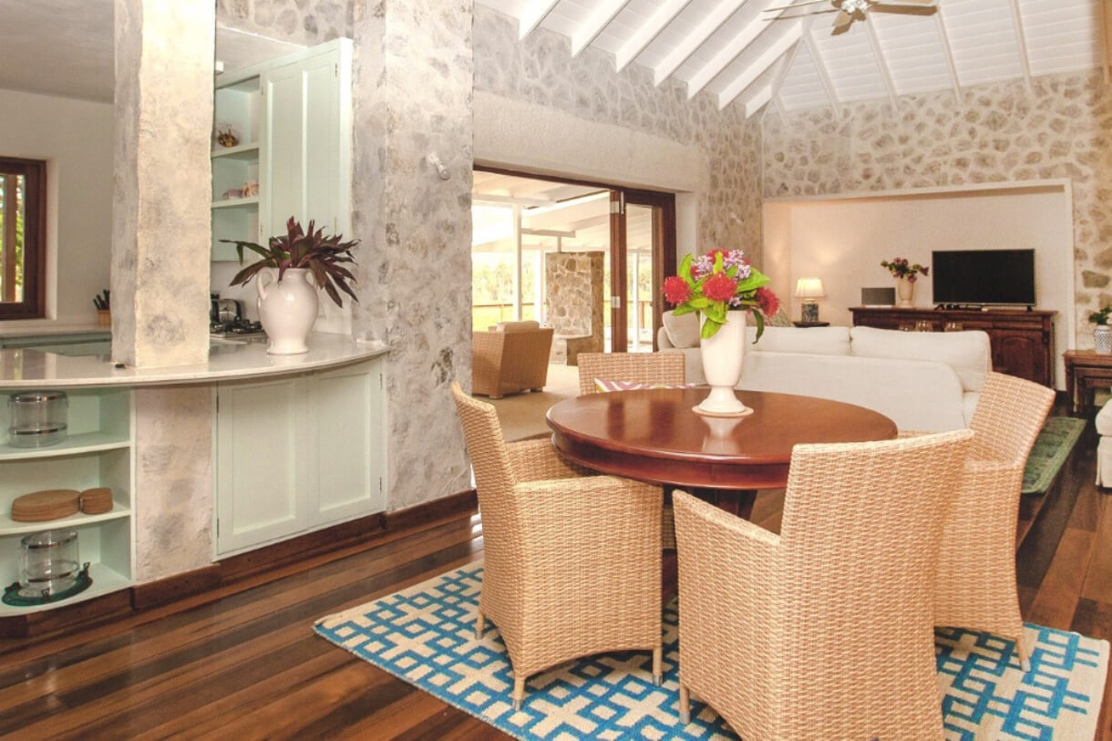 There are endless outside spaces for shaded dining areas where you can enjoy your meals, or maybe just a snack and a cocktail by the pools! If you would prefer, there is also a nice inside dining area just off the kitchen in the main top villa.