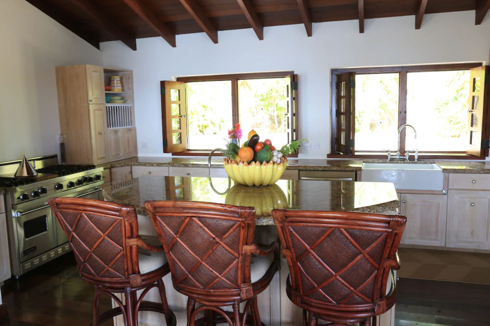 Sights & Sounds has the ultimate entertaining and workspace for the aspiring chef. This large well-appointed professional kitchen has high-end stainless steel appliances and granite countertops. A walk-in pantry stores a variety of small appliances and festive dinnerware. Your housekeeper Joy is available for meal preparations (excluding Sundays) for small additional costs which can be paid directly.