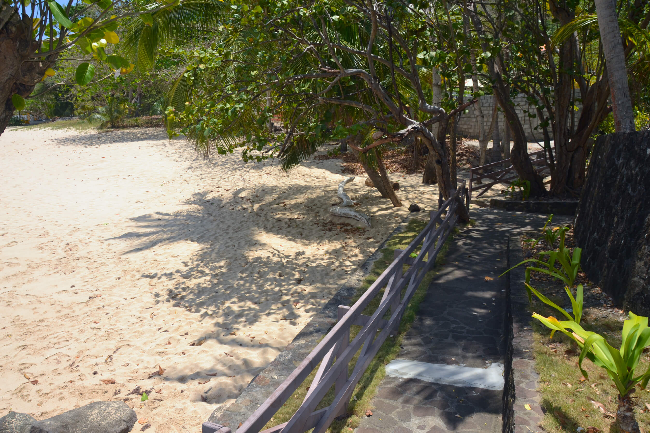 There is also a small garden area alongside the beach with a wooden gate and stone path leading right onto the sand.