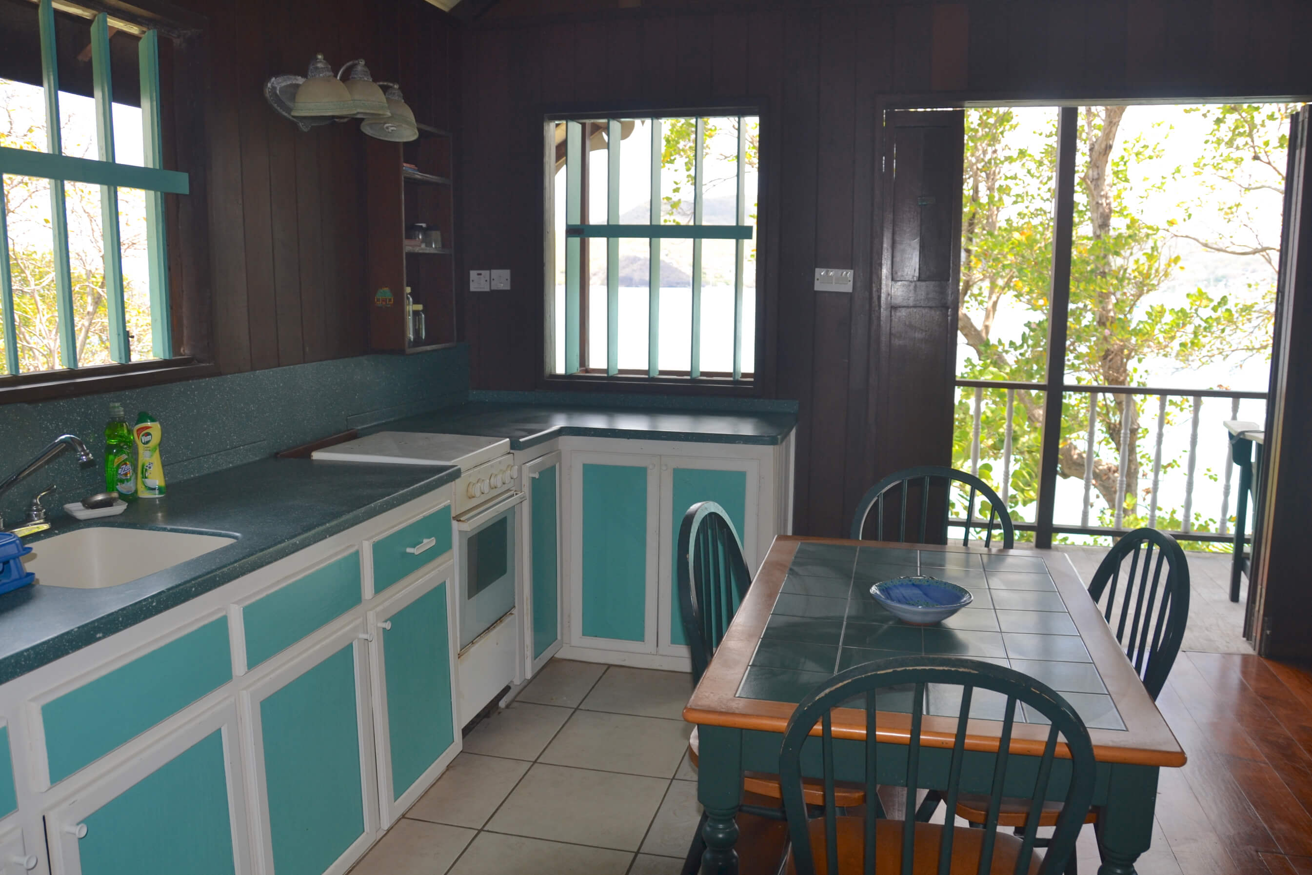 The kitchen is simple and bright and well equipped, with hot water, French press coffee maker etc... There is a wooden table and chairs where you can enjoy your meals, and also a lovely wrought iron coffee table set on the veranda. Lower Bay has a small local supermarket where you can get what you need. Alternatively, there are restaurants and bars close by where you can enjoy lunch and dinner, whilst appreciating the lovely sea views.