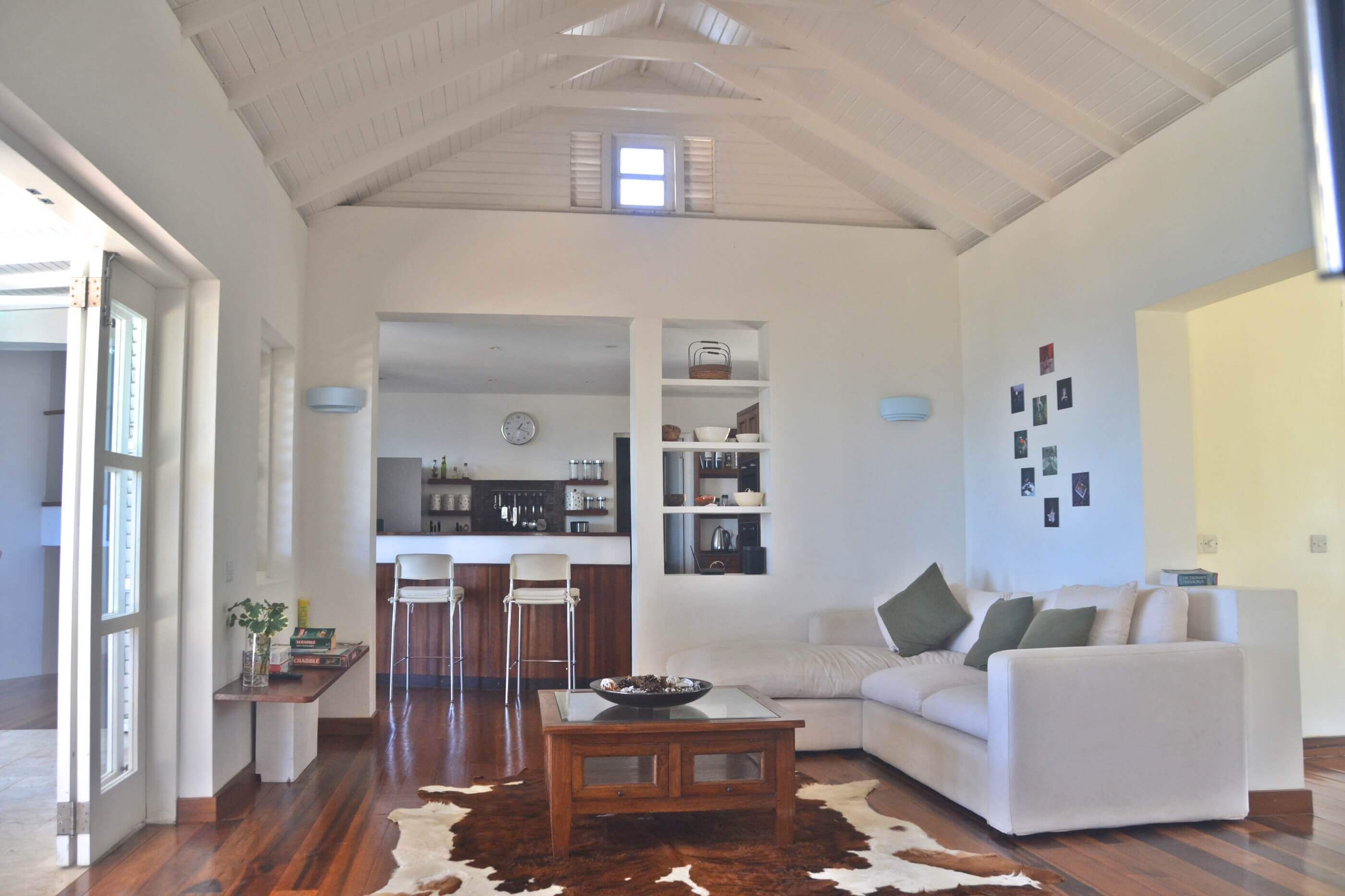 King House sits on a small headland cliff top above Admiralty Bay, one of the worlds most beautiful natural harbours. Polished hardwood floors, white on white interior basics and plush, comfortable sofas generate an easy open plan living space that faces out to the spectacular vistas and natural stone exterior terraces that surround the residence.