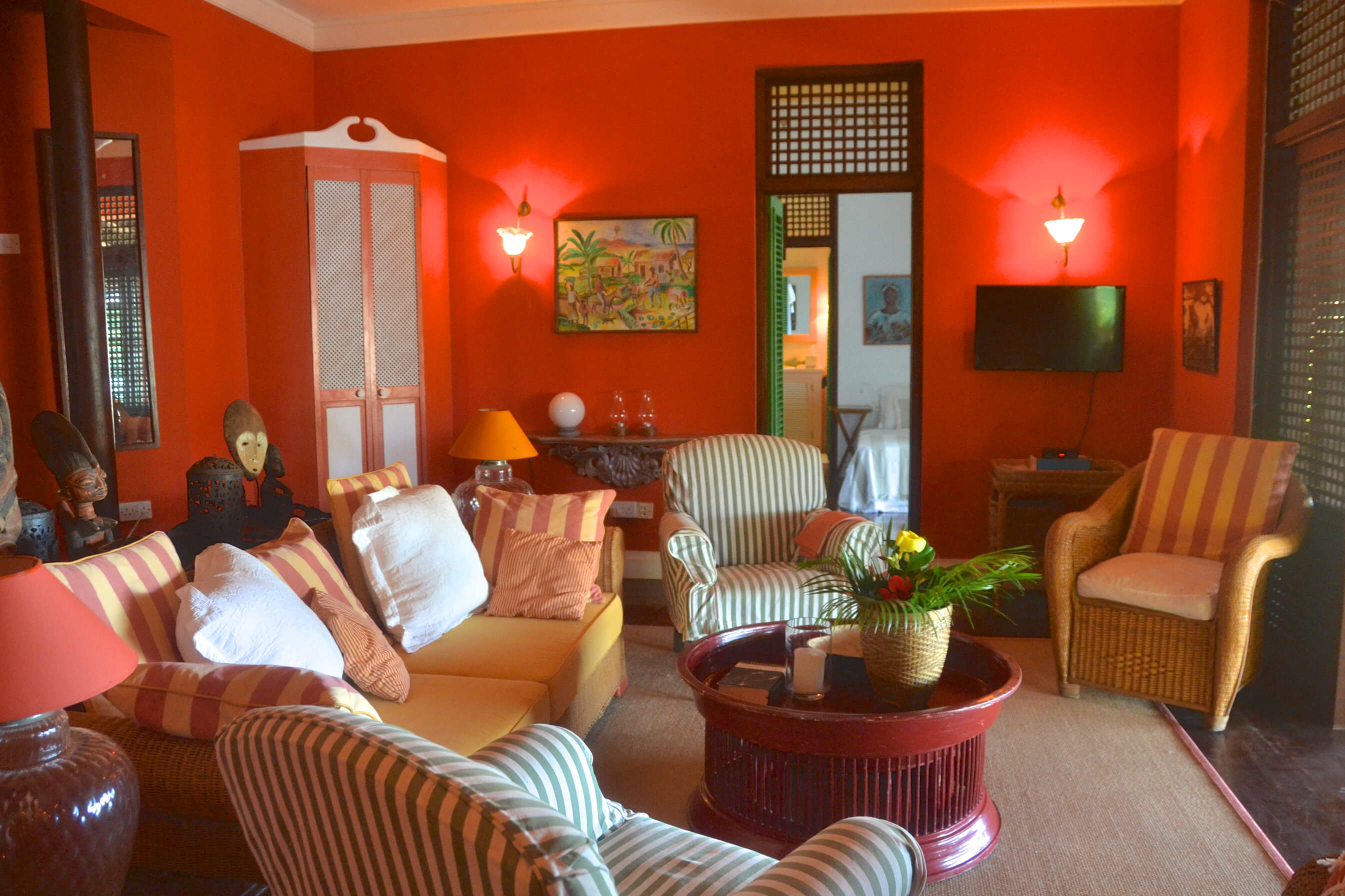 Along with the spacious veranda there is a large interior living area with sofas and TV. In keeping with the rest of the property, the interior design is always well considered
