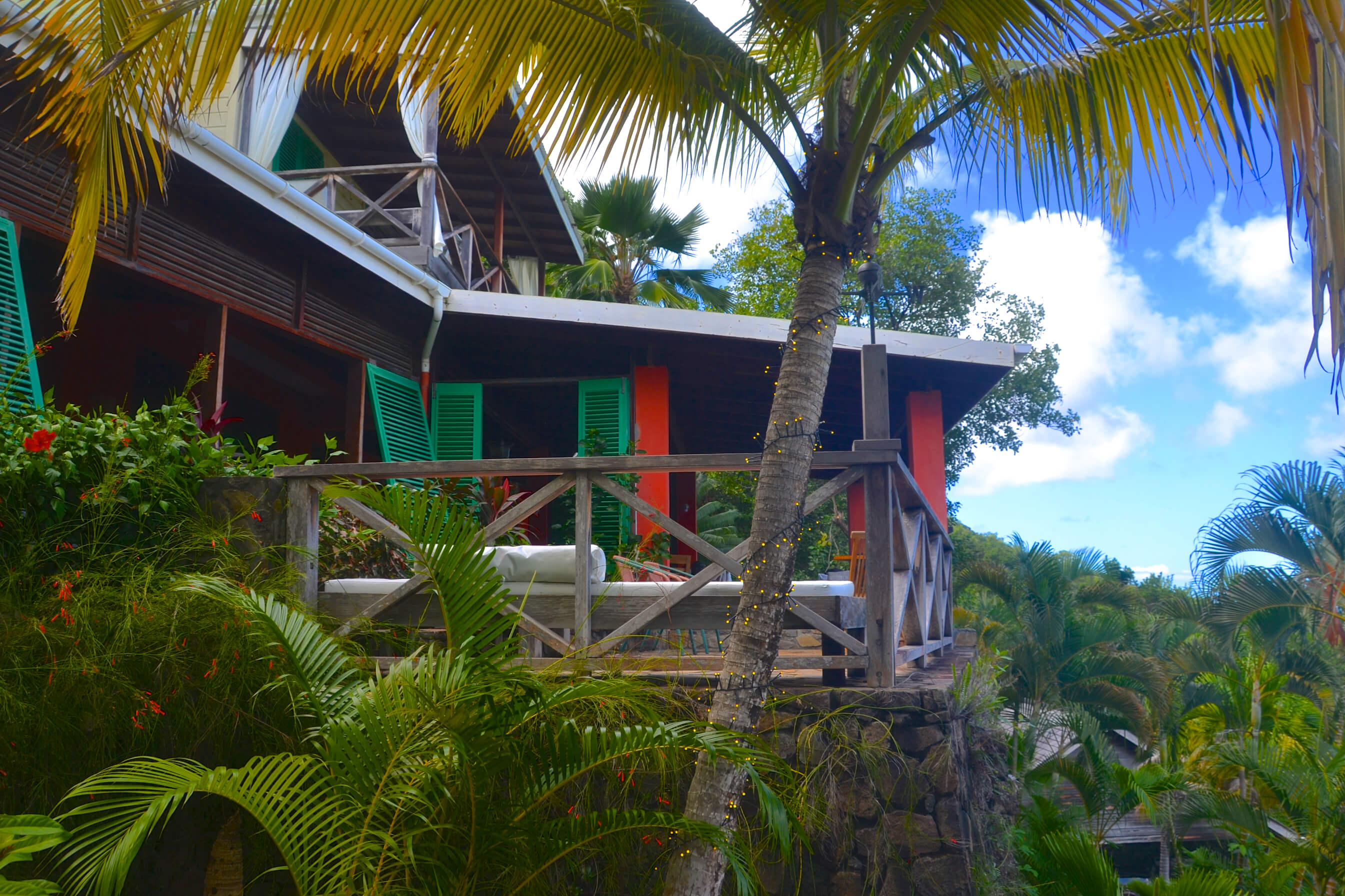 The very heart of Lime Tree Villa is a vast stone and wooden veranda. This is a spacious cool and comfortable area for relaxation, with plenty of chairs, sofas and cushions to your heart's content! Various seating areas around the veranda and surrounding lush gardens mean you can always find the perfect spot to relax and read a book whilst taking in these special ocean views.