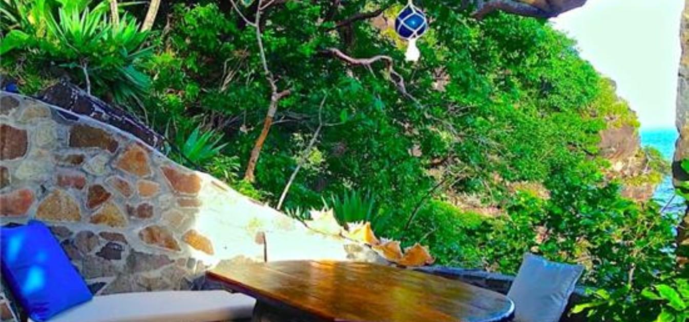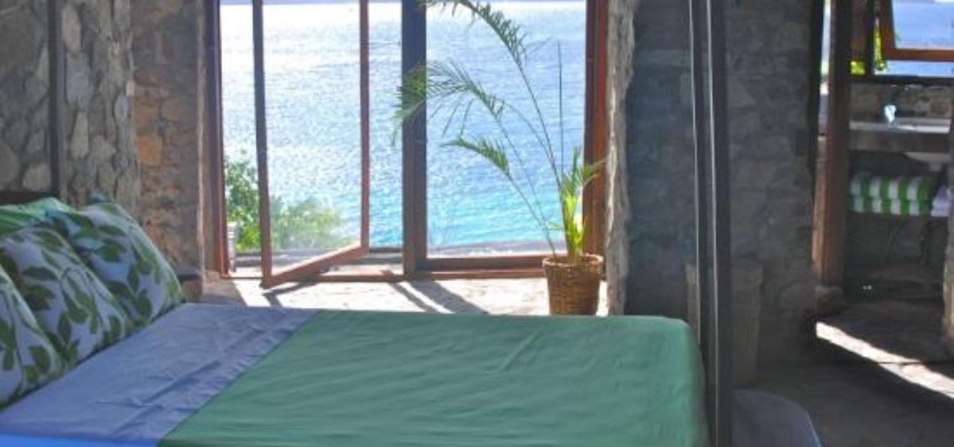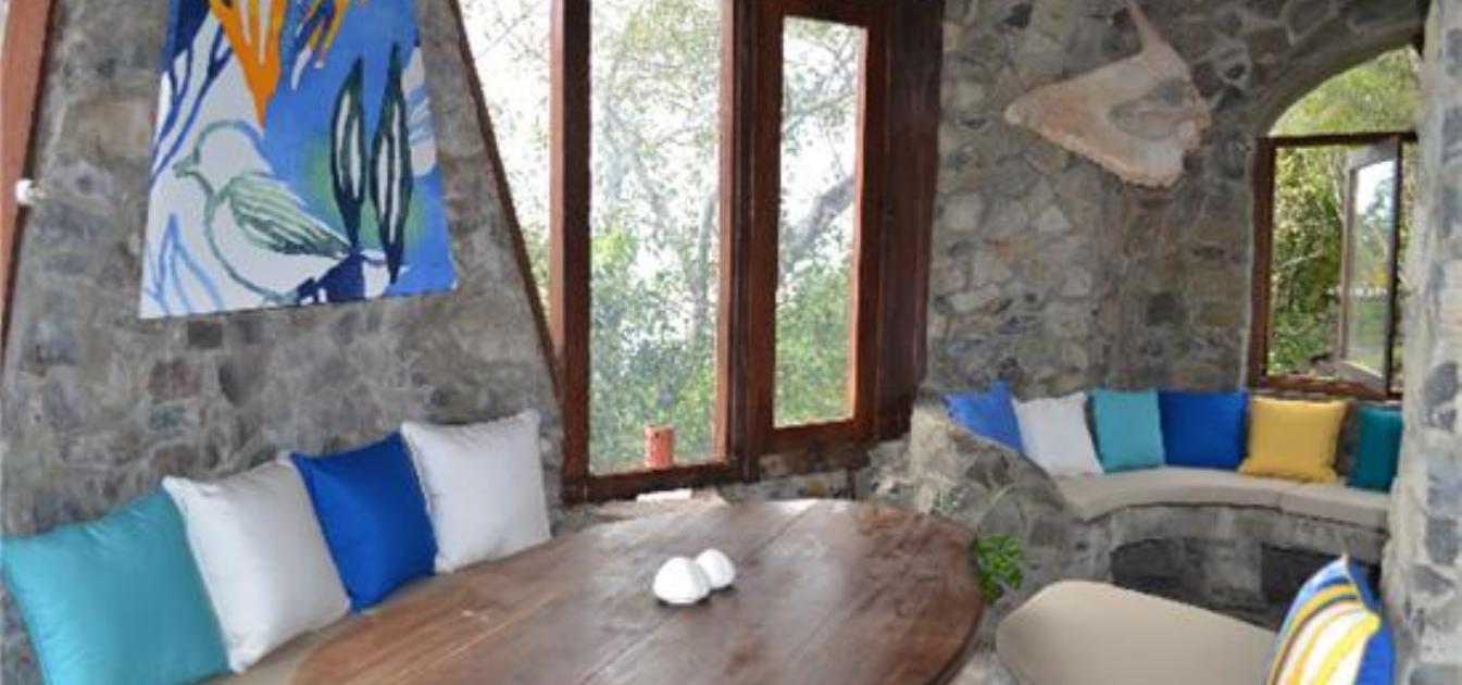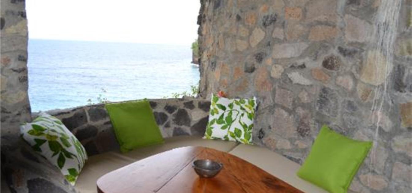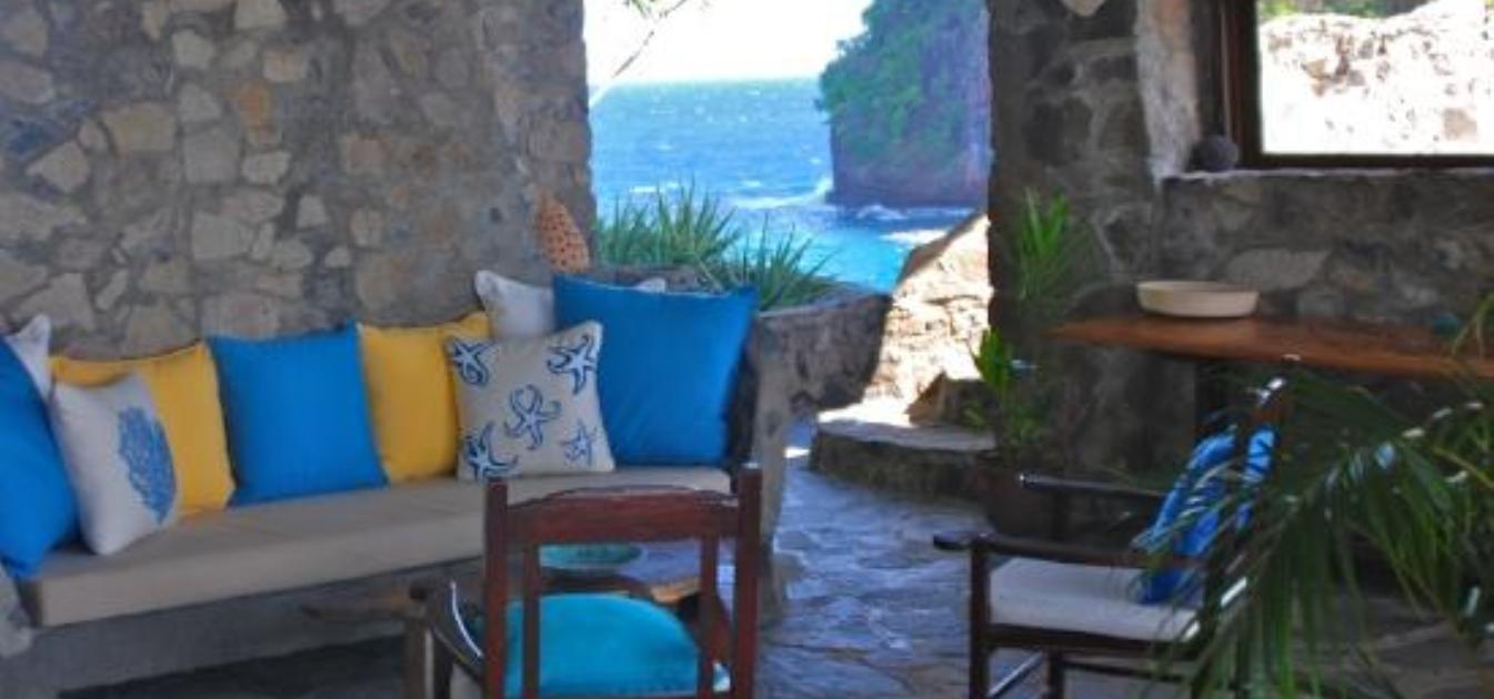 An unusual, charming and curvaceous 3 bedroom villa built from the local stone of Bequia and overlooking the ocean with stunning views and sunsets. Well maintained and recently fitted with new solar lighting, recharging outlets and refrigerator. Just steps above Moonhole beach.