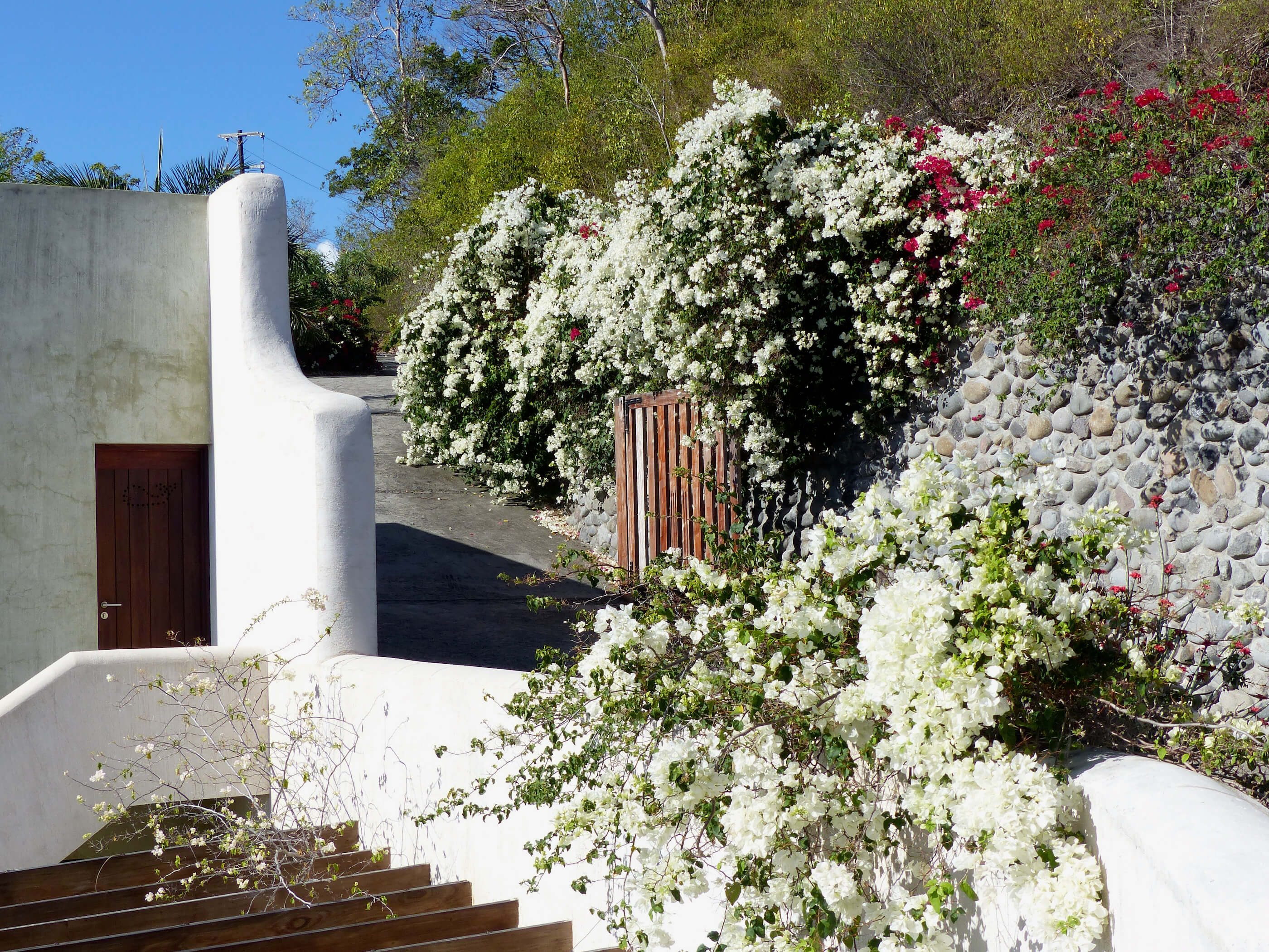 There is a beautiful walled garden with nice lawn, perfect for children at play. The gardens in general have matured and offer a natural contrast to this stunning villas crisp facade.