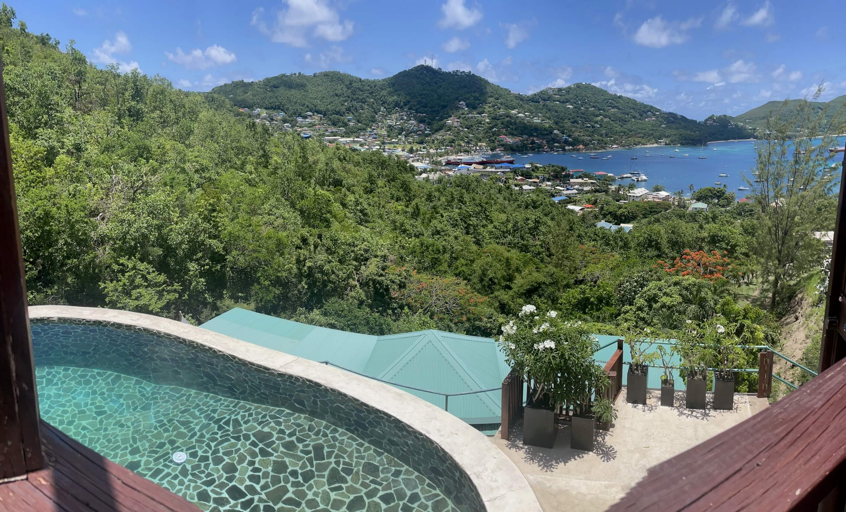 Gingerlily is a south facing villa perched on the gentle slopes overlooking Admiralty Bay, considered by many to be one of the worlds most beautiful natural anchorages.