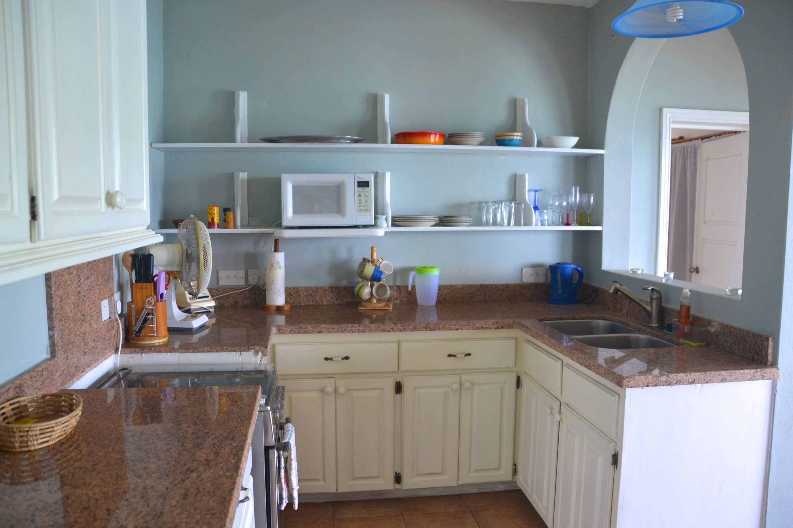 This holiday villa has typical Caribbean charm, decorated in bright, fresh colours. The studio comprises the whole downstairs floor of the villa.