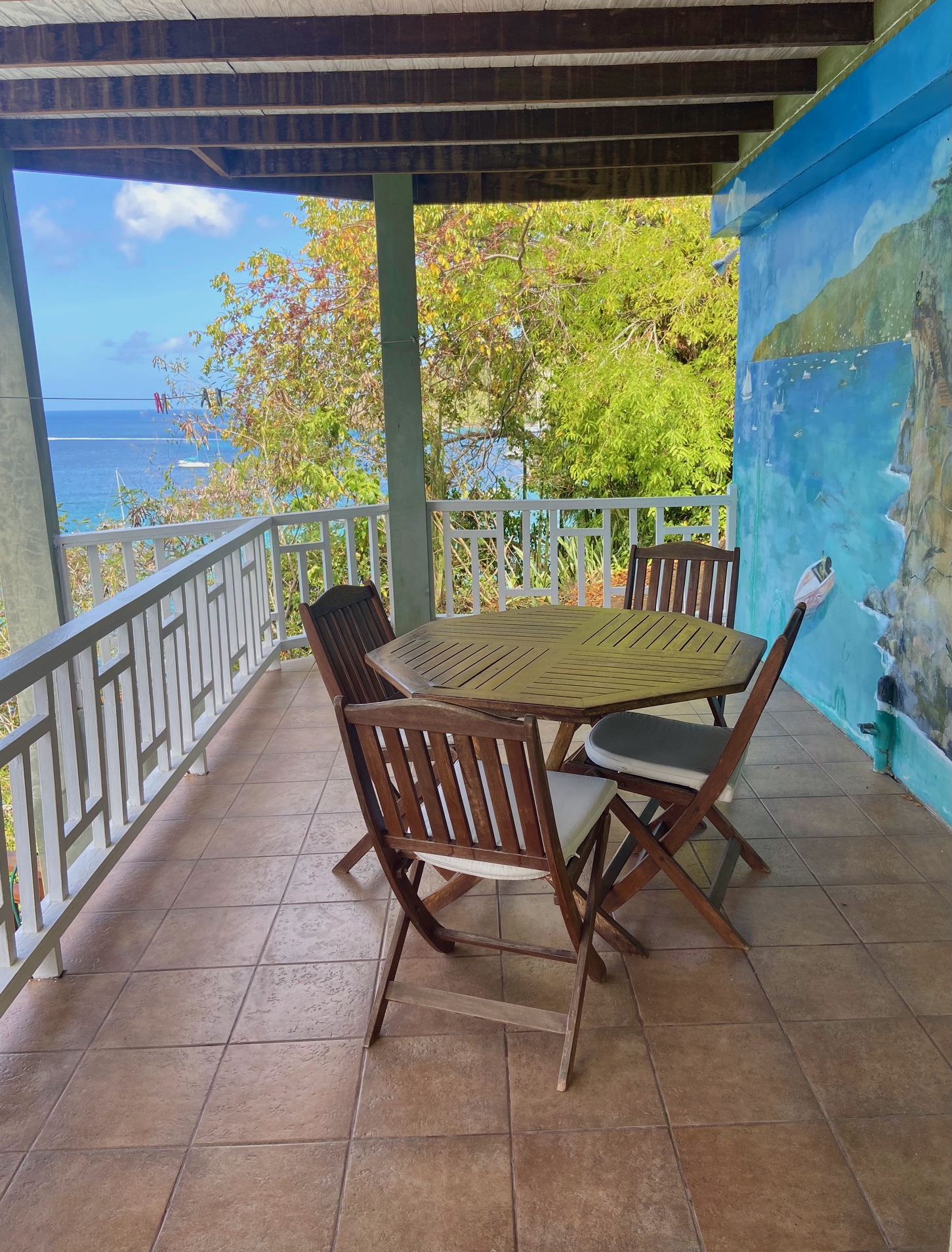 The balcony is lovely and shaded, with nice comfortable seating and plenty of space to chill out in the cool breeze. This is a lovely area to relax after a long day's snorkeling, diving, or Bequia exploring. The pool deck area (shared with guests staying in the Upper Level) is the perfect place to relax and enjoy those simply spectacular views. The Gumbo Limbo Studio is a great Bequia holiday rental for 2 guests. The villa can also be rented together with the upstairs villa, for a maximum of 6 guests. Laundry facilities are available by arrangement through the housekeeper.
