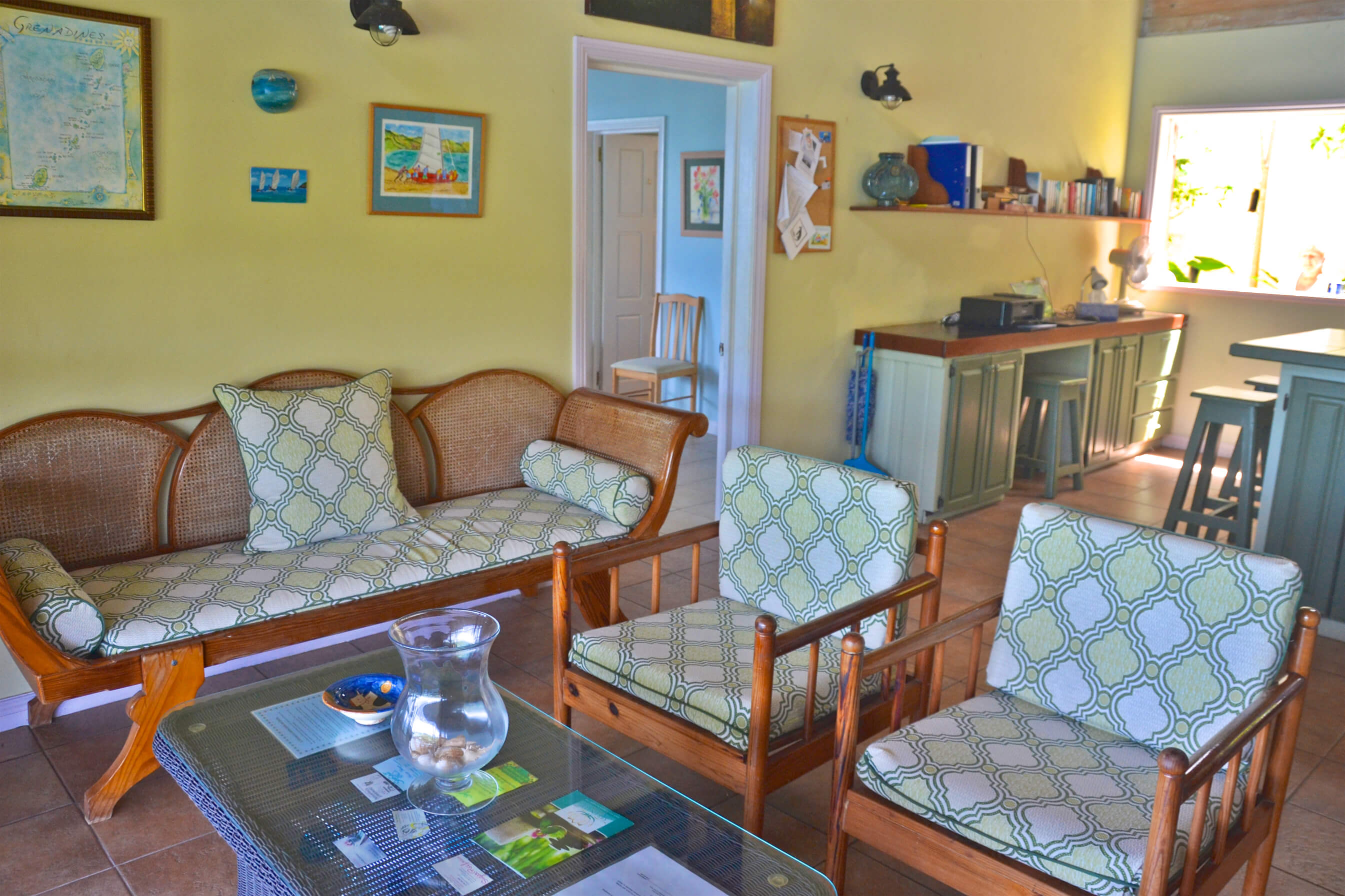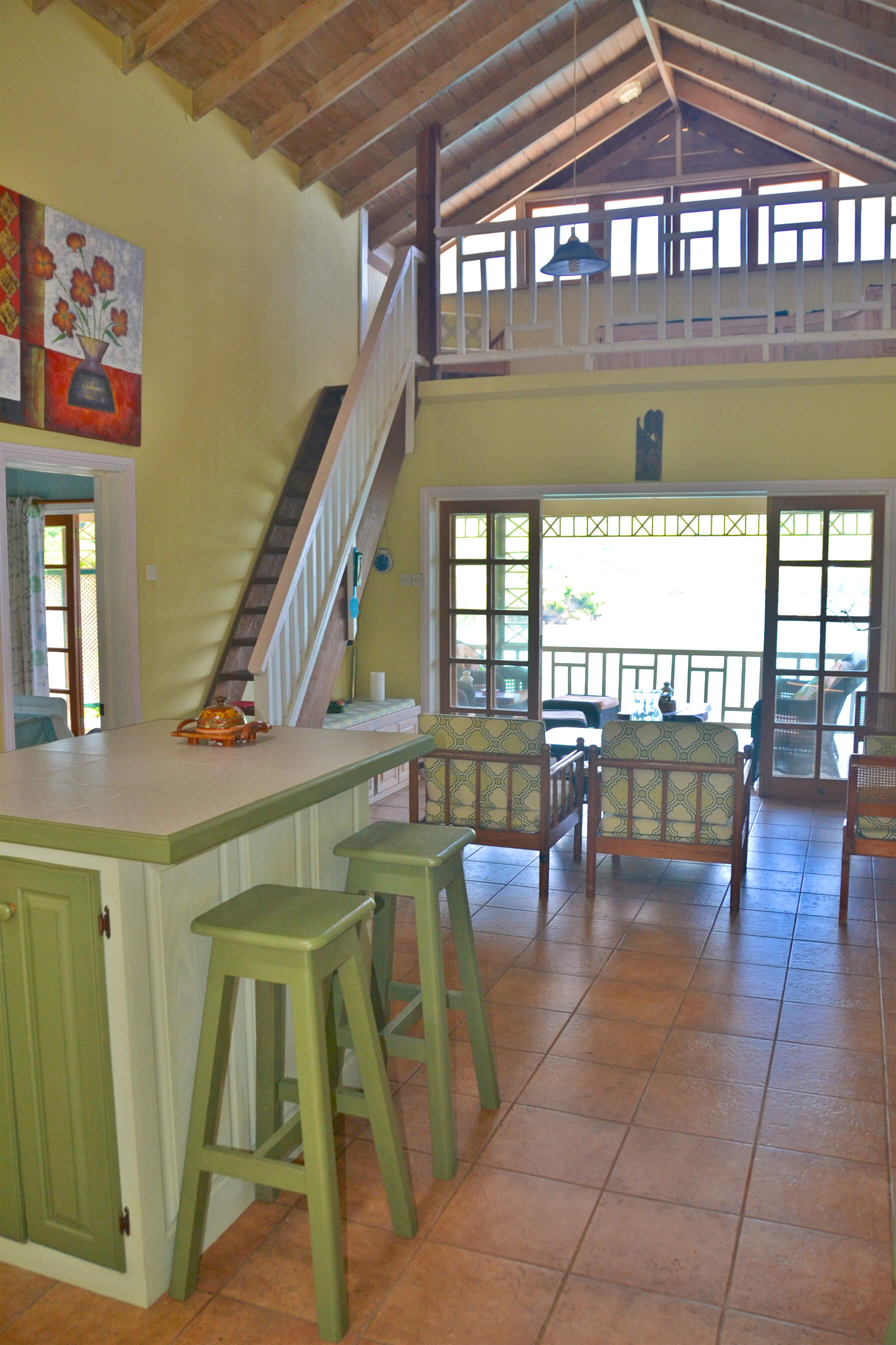 Up a flight of stairs, there is a small mezzanine floor that acts as a great 'look out' with a comfortable sofa, from here you can see the beautiful sights that Bequia has to offer. This is a great little space to relax, and take in your surroundings.