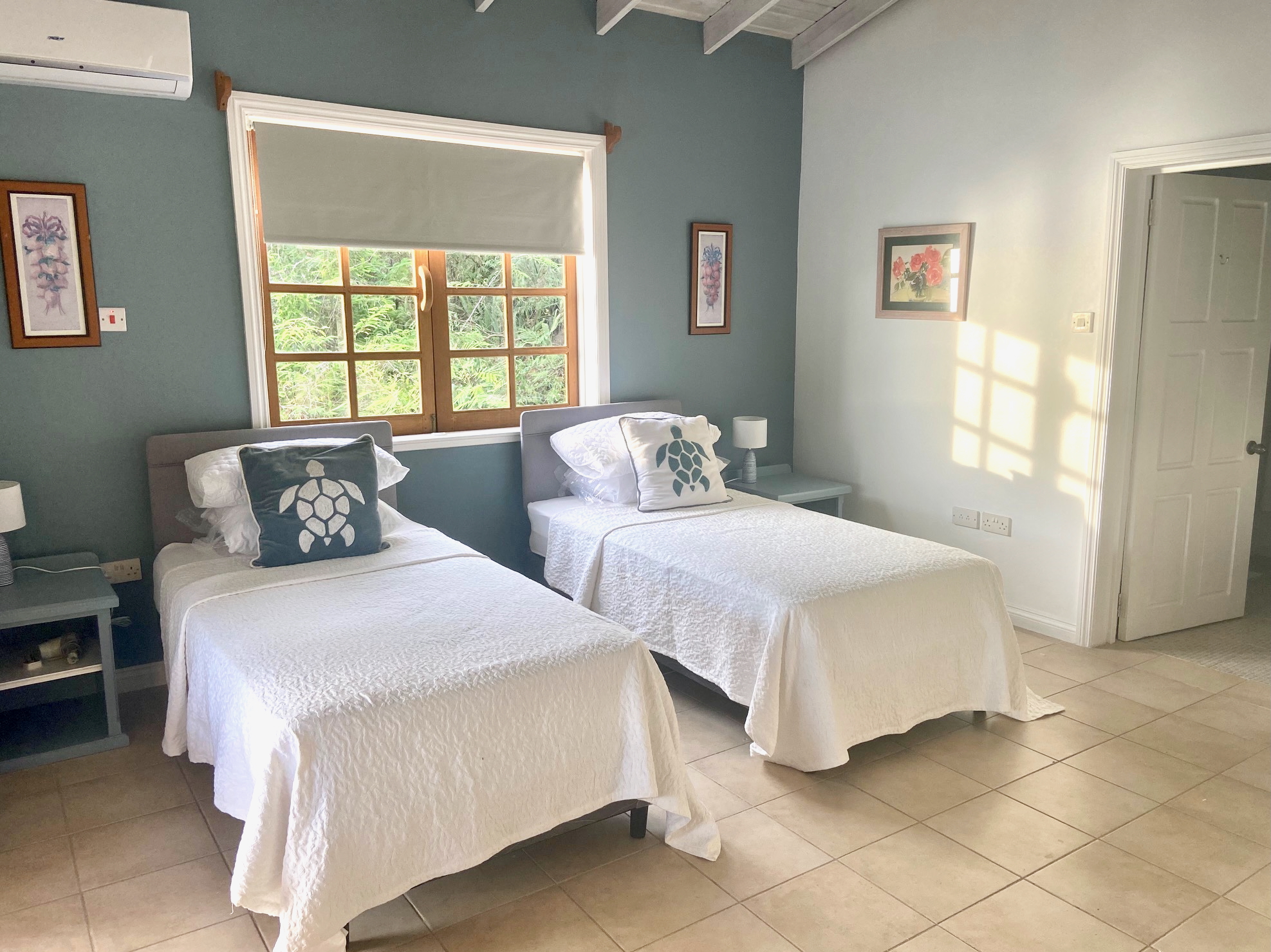 This Bequia villa rental has two airy, en suite bedrooms (one double and one twin room) with high wooden ceilings to keep the rooms cool along and air conditioning for those who prefer for added comfort. Both bedrooms open out onto the balcony, so you can wake up and look out onto the wonderful views of the Princess Margaret Beach.