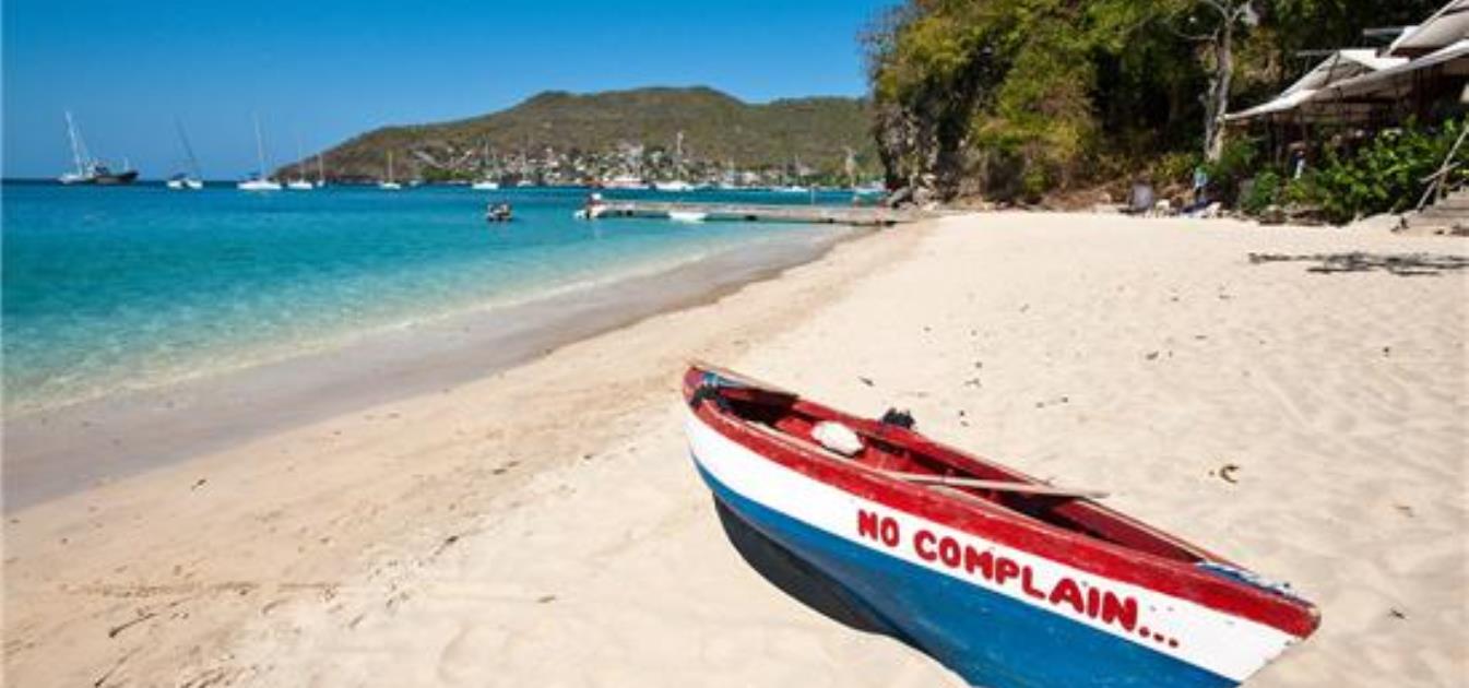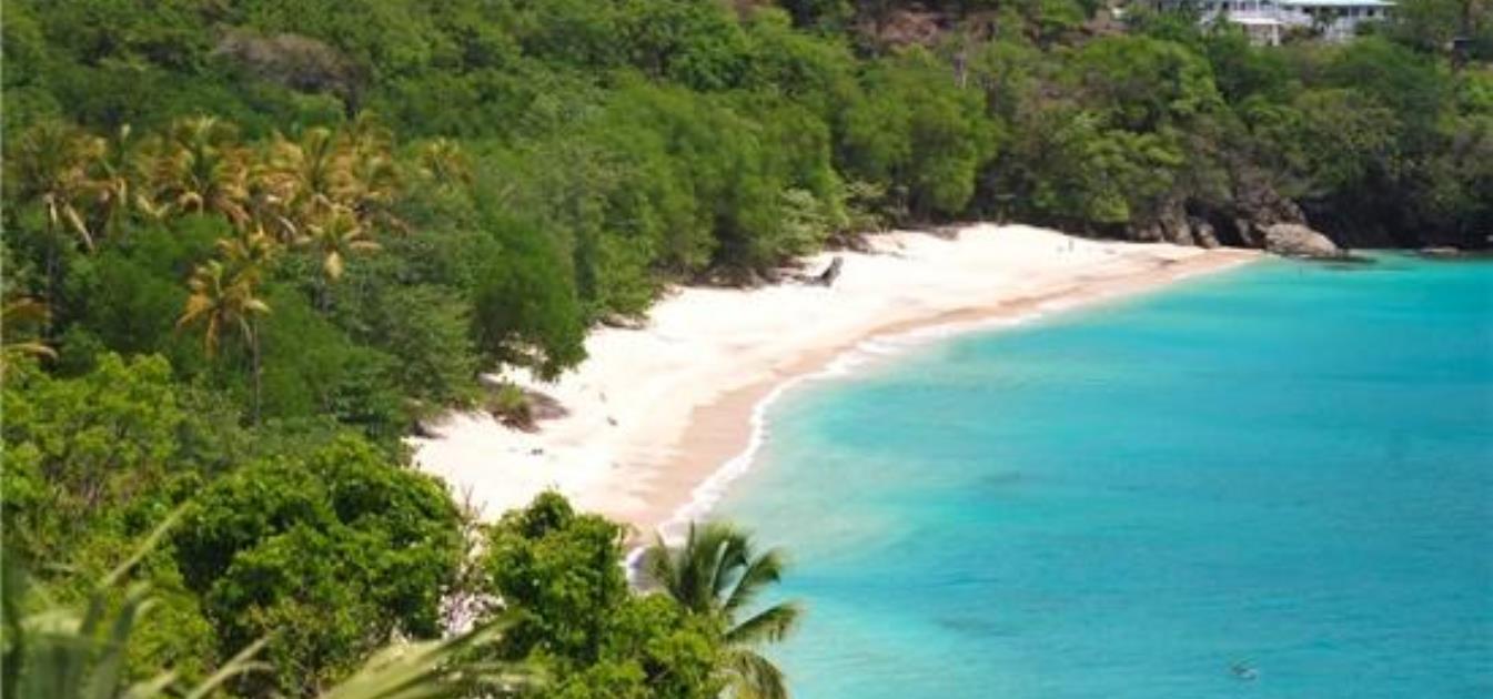 This is a favourite beach for visiting yachts and has a great convivial atmosphere. Gorgeous, deep coral sand beach. Excellent swimming. Beautiful trees for shade... There's even a cave to explore! Now with a spectacular beach restaurant. Best reached either by water, there is a pretty wooden jetty for a dinghy to the harbour, or via the Belmont Walkway Coastal Path from Port Elizabeth. Above and behind the beach a handful of special houses nestle amongst the trees or on the headland. brightly painted hand made boats rest in the shade of palms and sea grape.