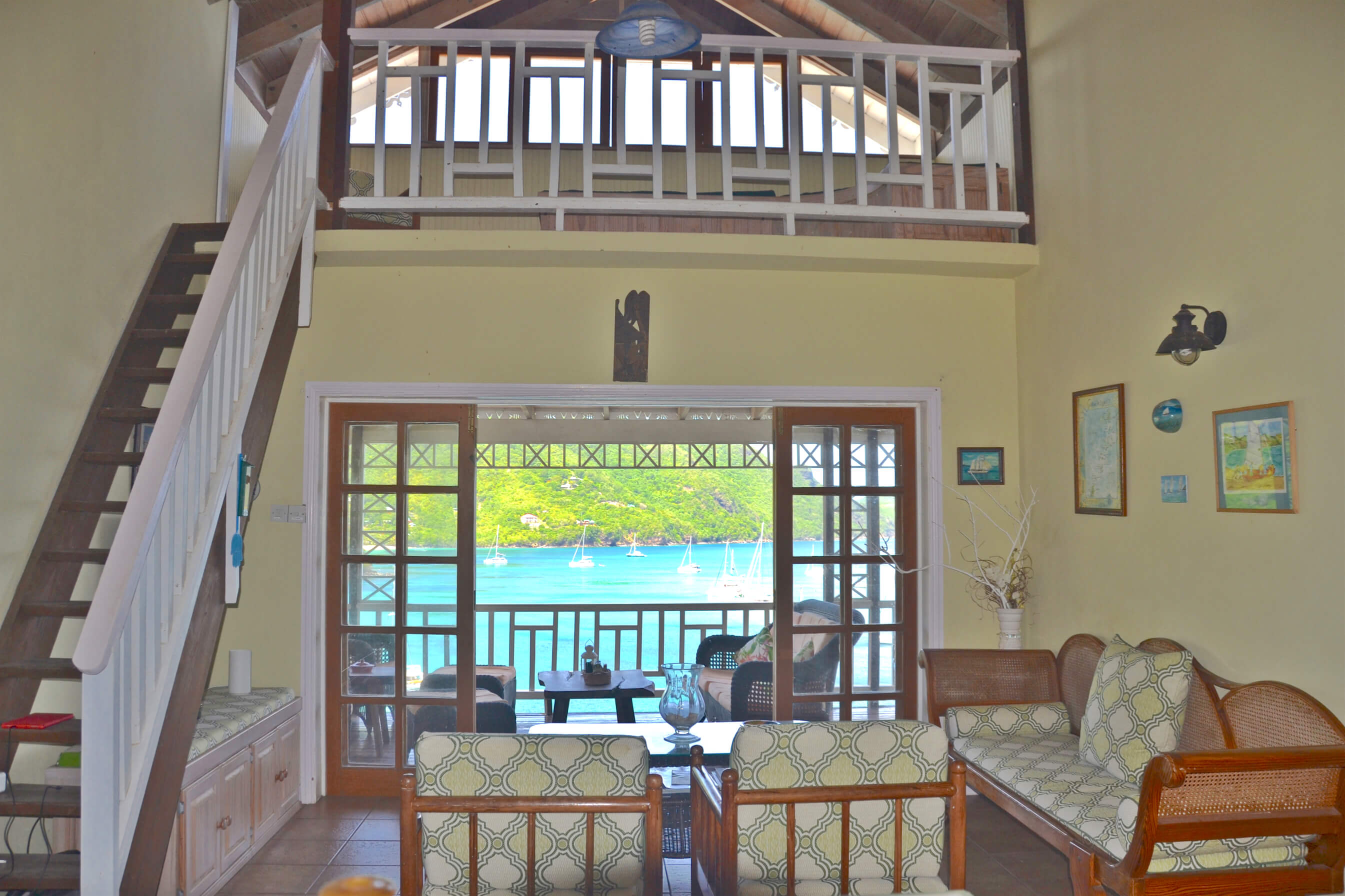 Up a flight of stairs on the upper level, there is a small mezzanine floor which acts as a great 'look out' with a comfortable sofa, and you can see the beautiful sights that Bequia has to offer. This is a great little space to relax, read a book and take in your surroundings. The upper level and studio apartment can be rented together or separately, and work perfectly either way. The villa therefore workswell for groups of 2, with a maximum capacity for 6 people in Gumbo Limbo or 14 total if combined with Piperie.