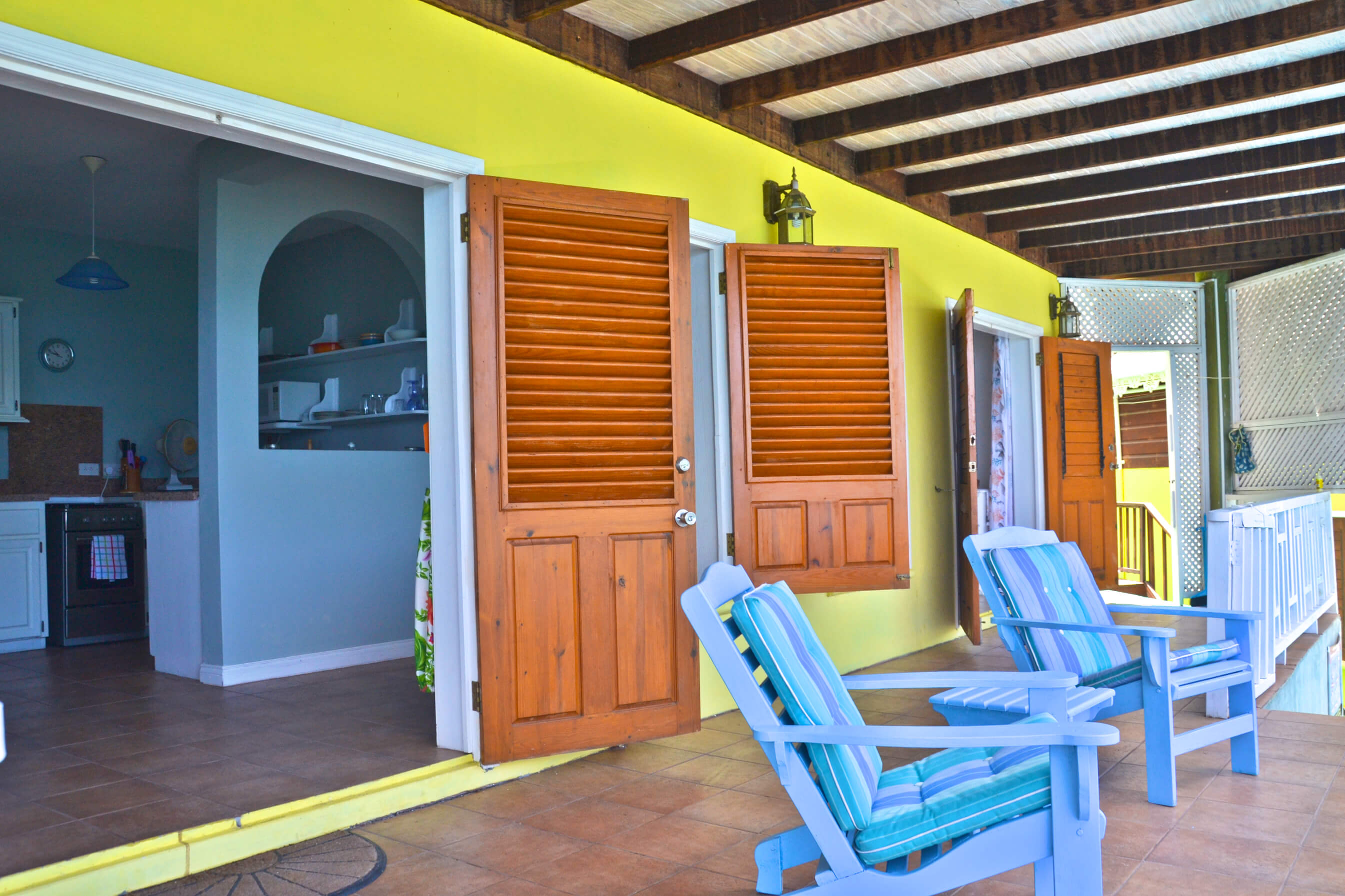 This Bequia holiday home has lots of lovely space on the balconies and wooden decking, all finished with a pretty local style gingerbread trim. There is plenty of seating and space to enjoy meals, whilst you benefit from the cool breeze, and look out onto the beautiful views that Bequia has to offer.