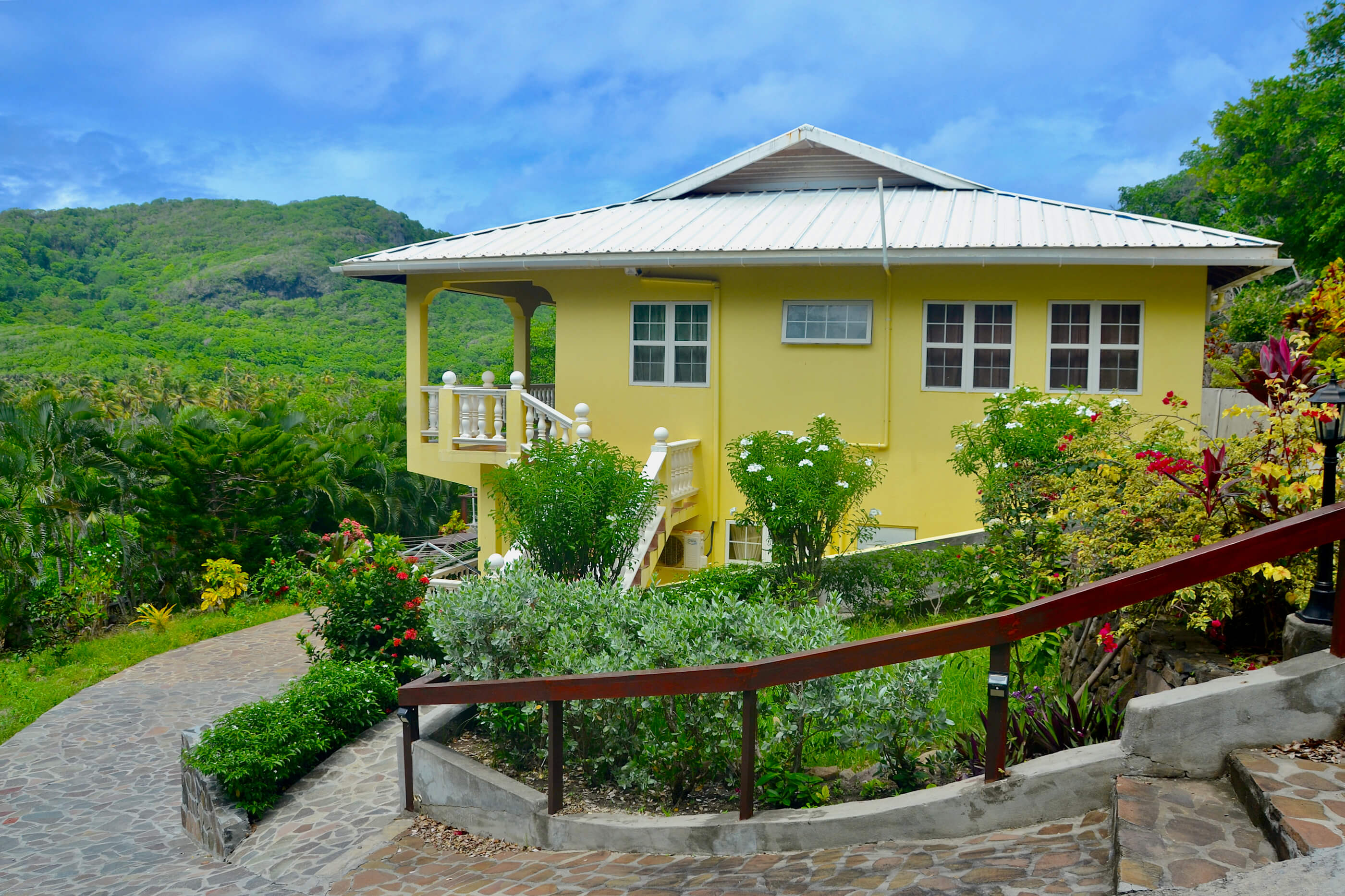 Santa Maria is charming villa, beautifully situated in the quiet private valley of Spring. The views are fantastic over the valley and coconut plantation, and you can see out to the enchanting island of Balliceaux. Due to it's location lower down in the Estate, one can easily stroll down to Spring Bay for a walk along the shore or a dip in the turquoise ocean.