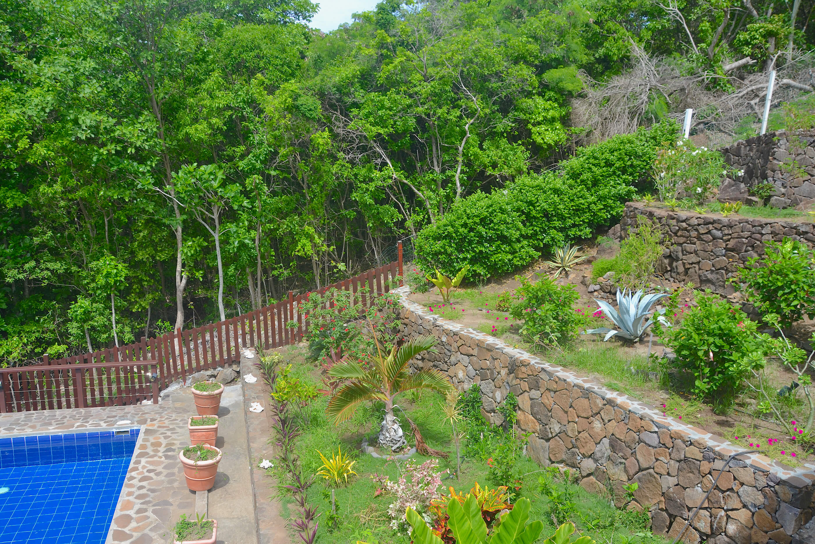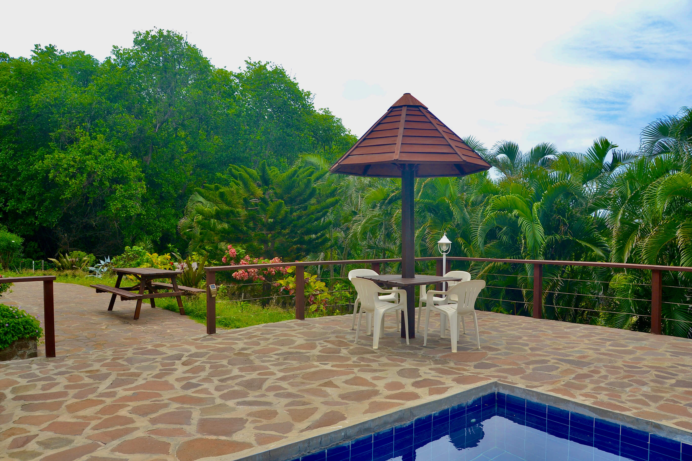 Perhaps the best attraction of Santa Maria is the wonderful natural stone pool deck area. There are sun loungers, so you can relax with a cool drink, and soak up the sunshine. There is also seating, and table space where you can enjoy a quick snack or BBQ by the pool. The views from the pool are also lovely, and from here you can really appreciate the surrounding tropical gardens.