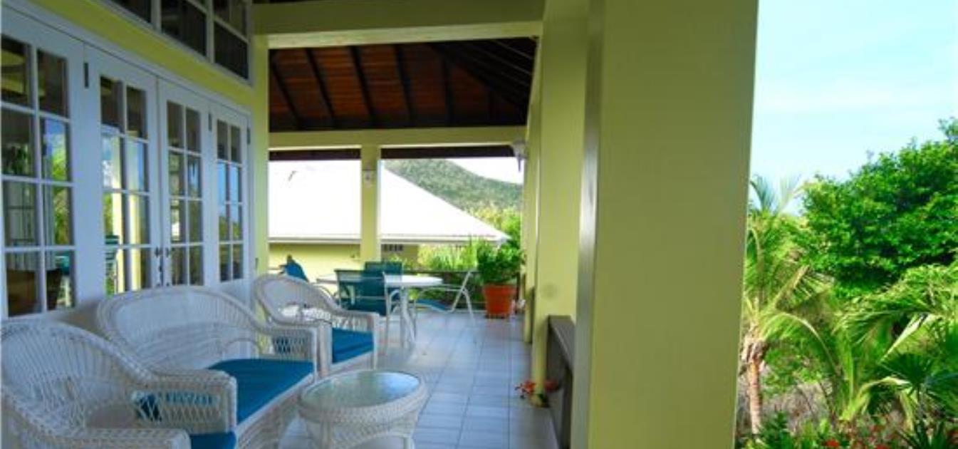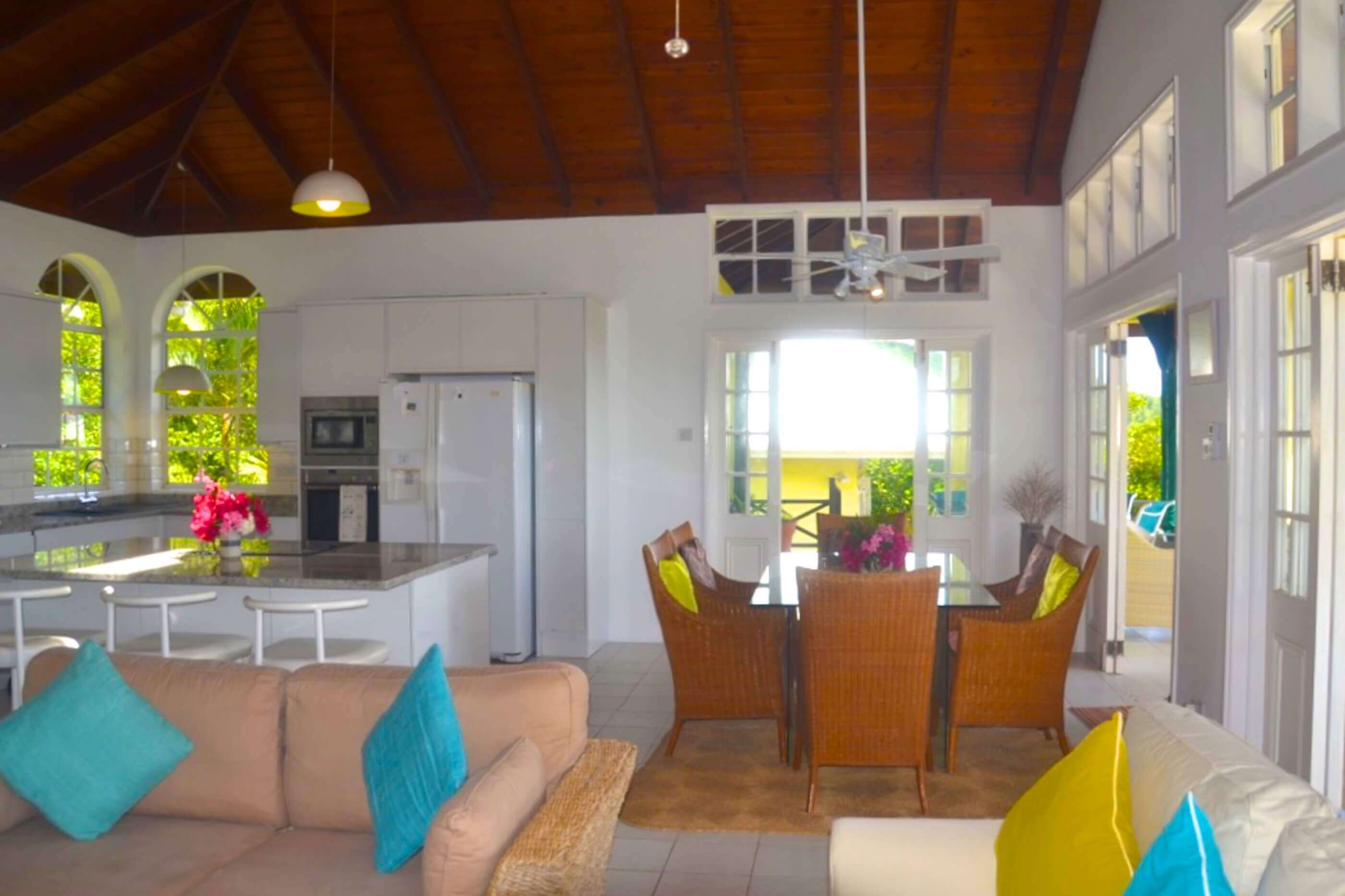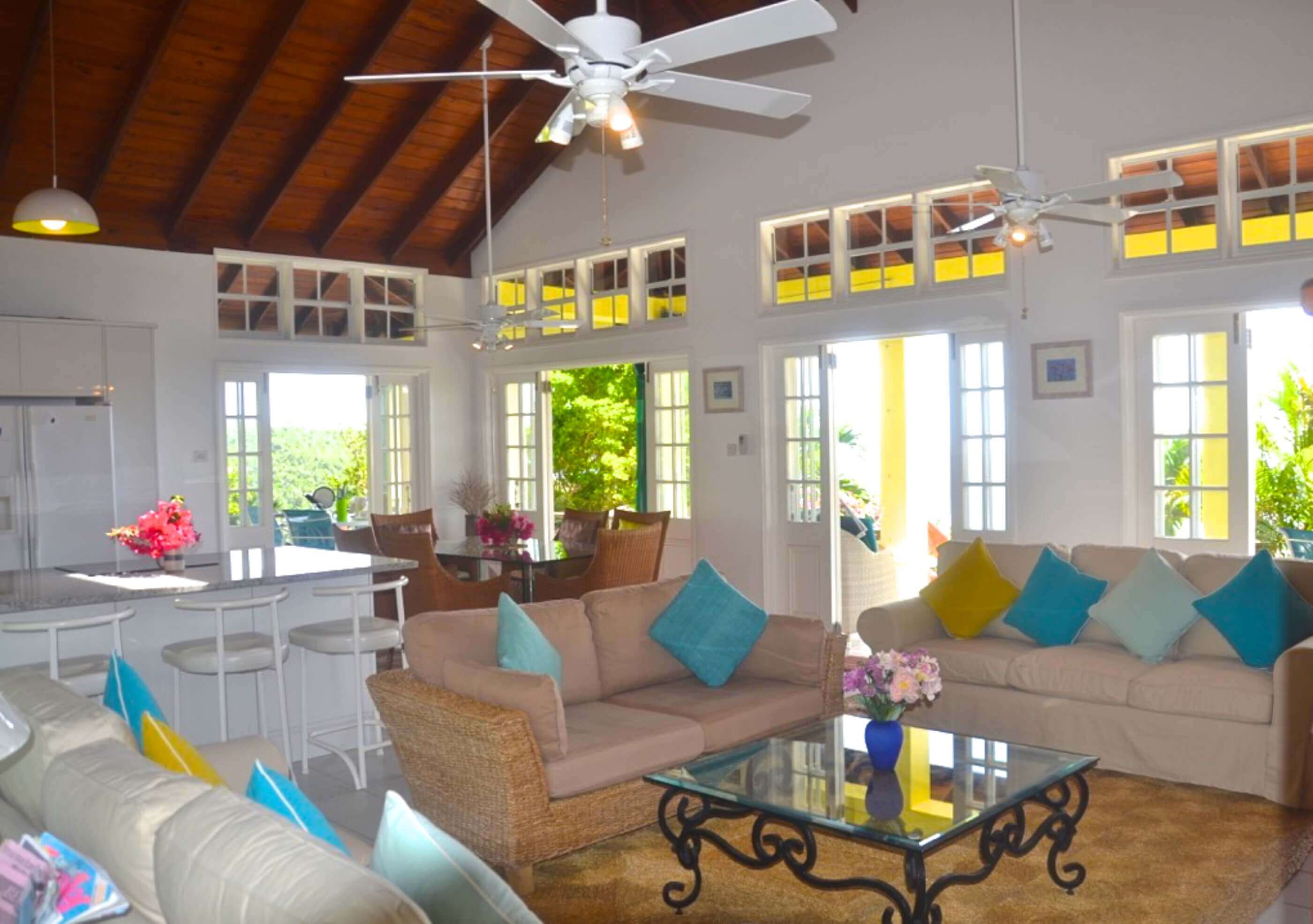 The veranda at Windsong is an excellent place to spend some time relaxing. There are many outdoor seating and dining areas to enjoy, and double doors throughout the villa open out onto this space, giving the whole property the advantage of a lovely, cooling ocean breeze.