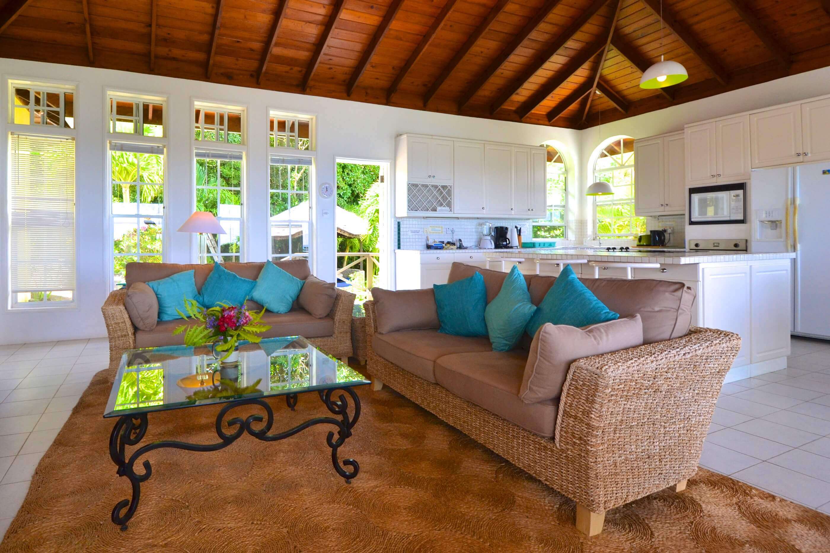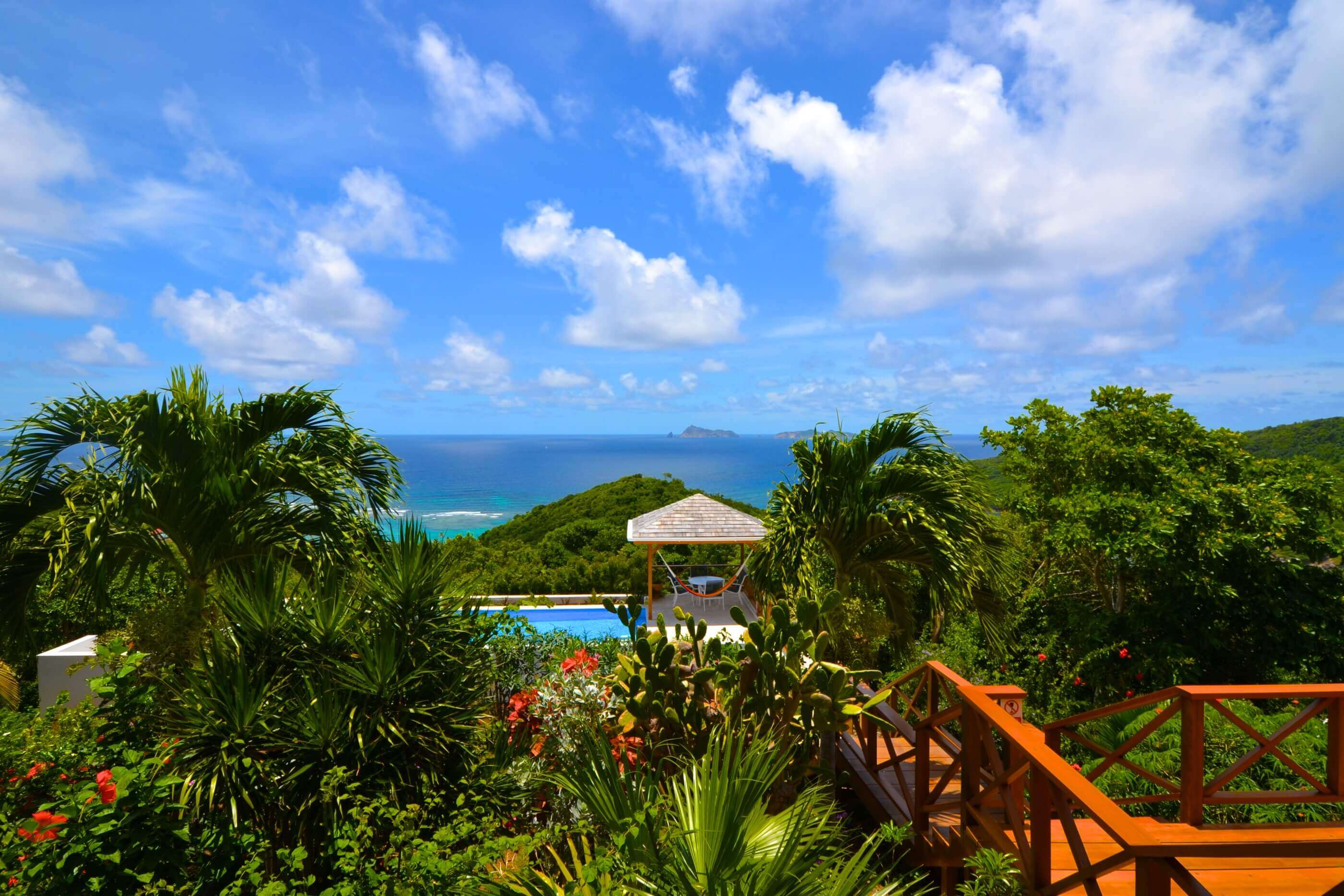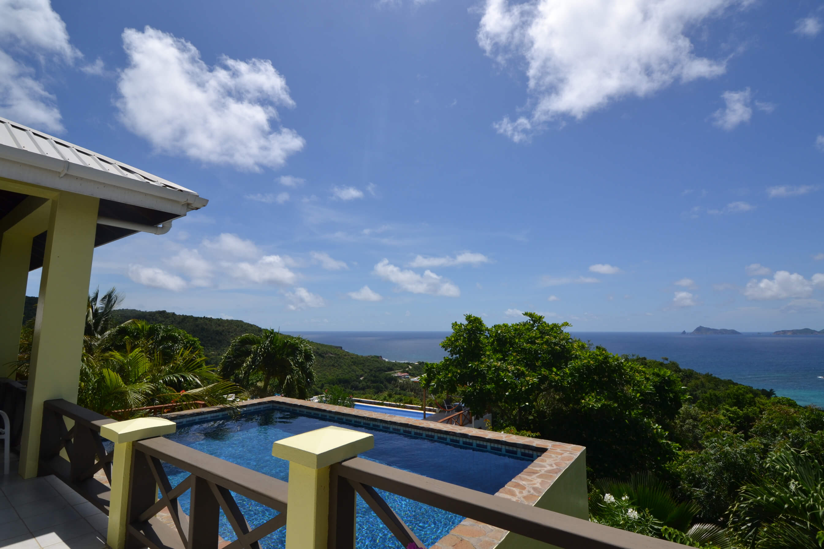 From Windsong's veranda and pool decks you have views over 2 palm fringed beaches, classic coconut plantations, Crescent Bay and excellent views of the enchanting islands of Balliceaux and Battowia.