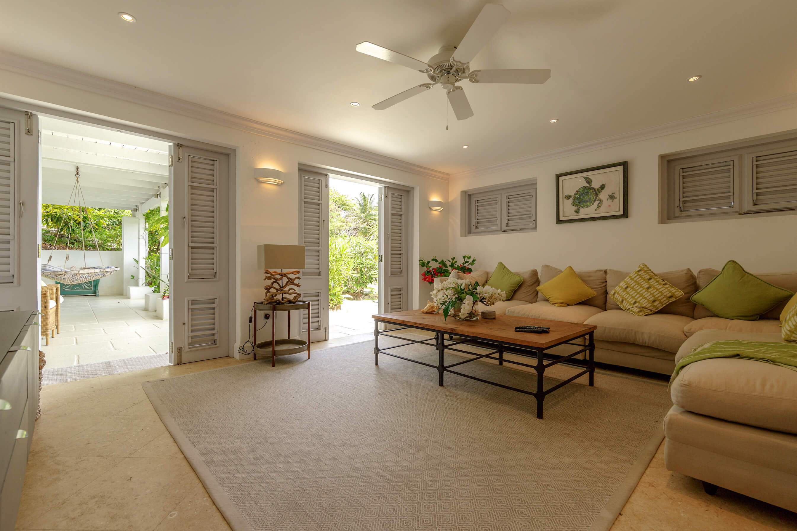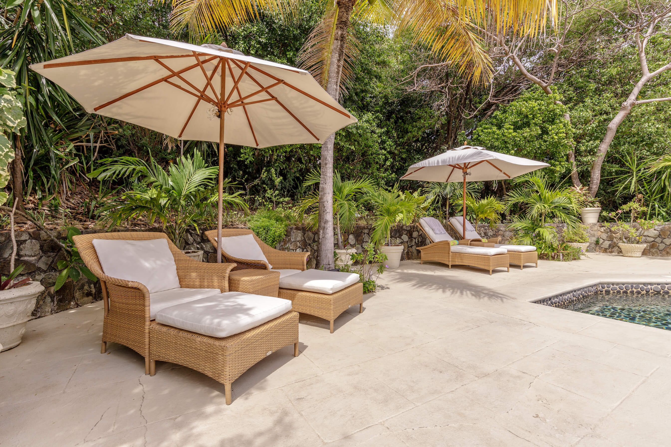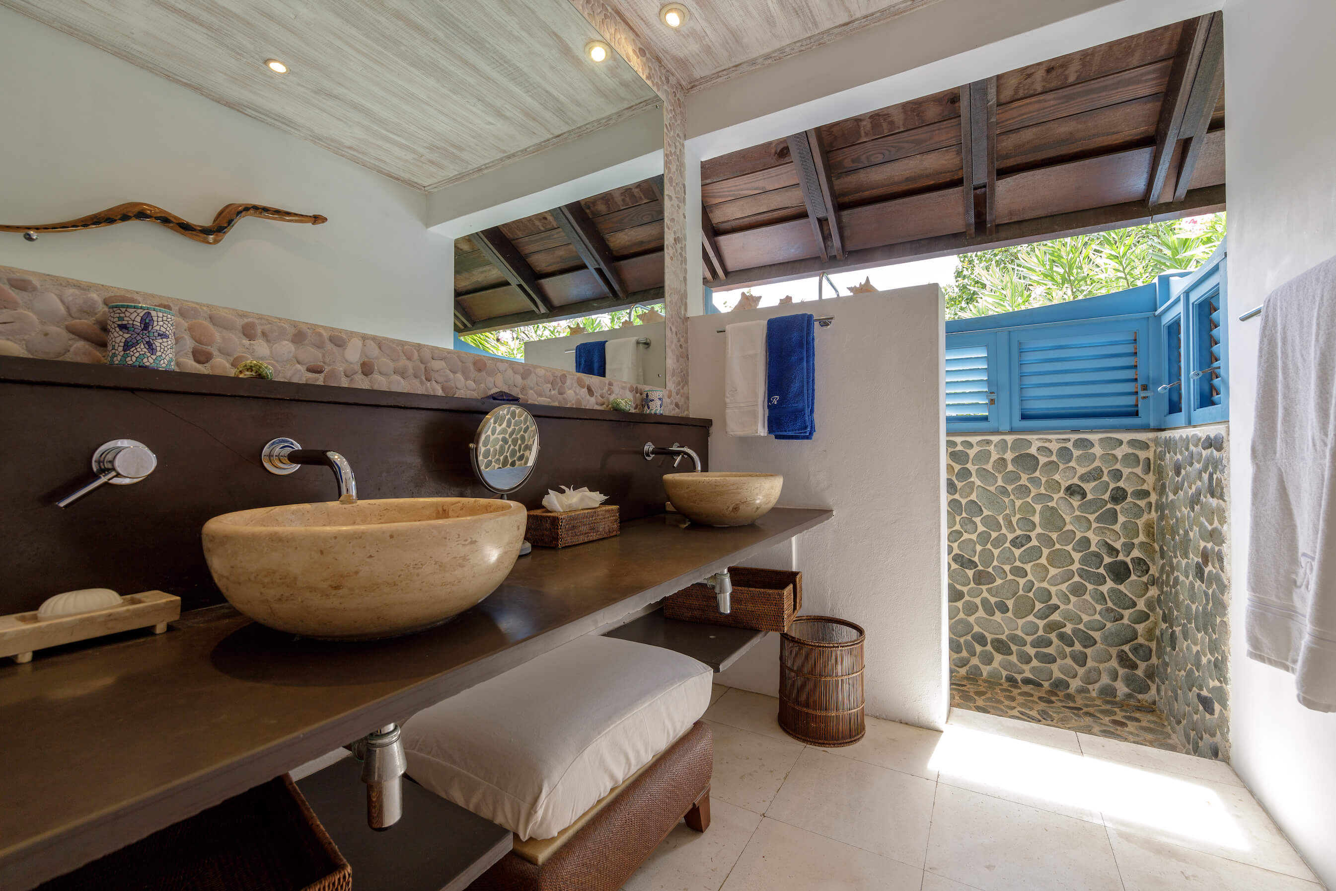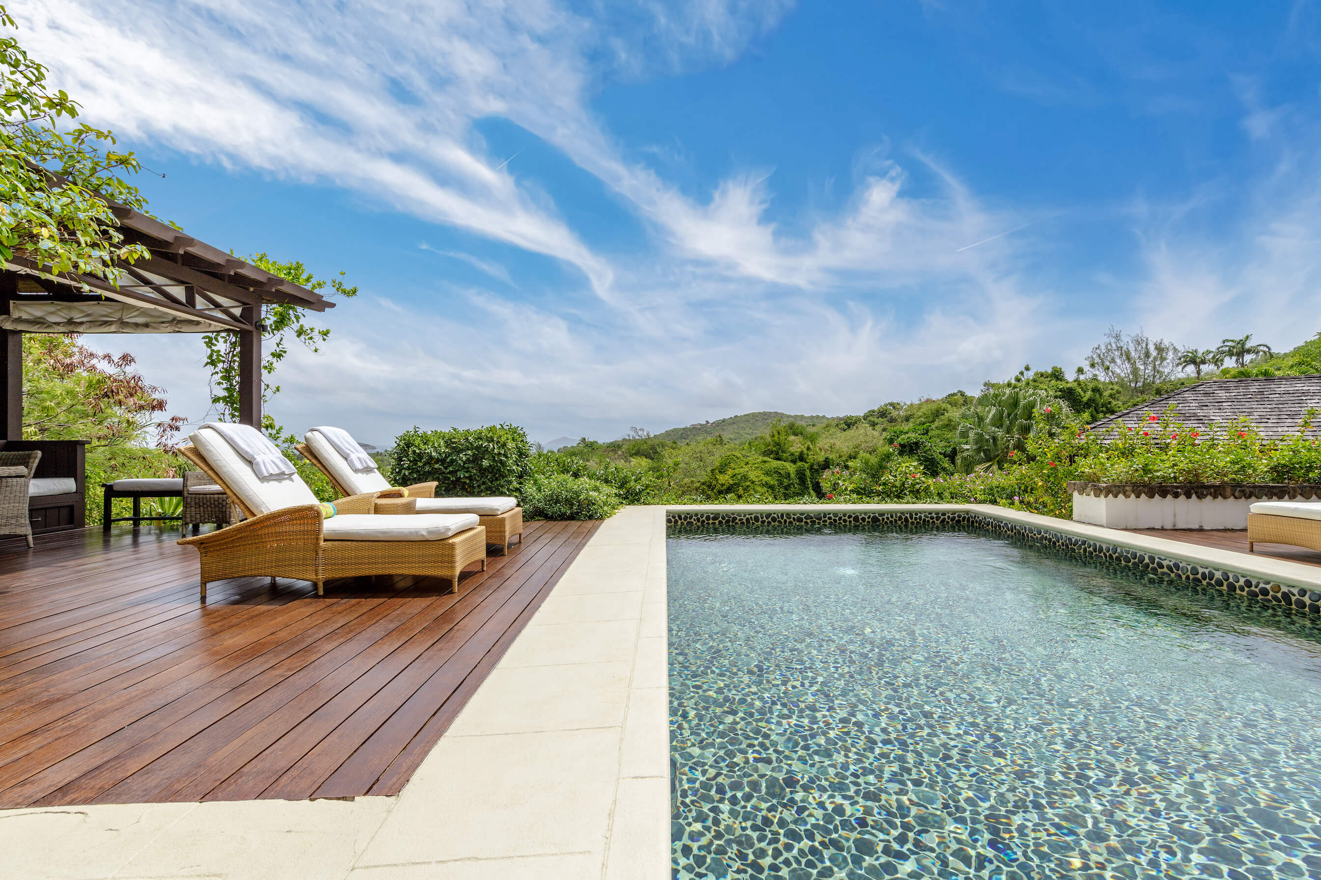 The freshwater stone lined pool is 29' long with sun loungers and a dining gazebo, outdoor showers finished in the same curvaceous pebbles that line the pool. The pool area overlooks the tropical gardens and Caribbean sea beyond - the perfect place to relax or enjoy a meal.