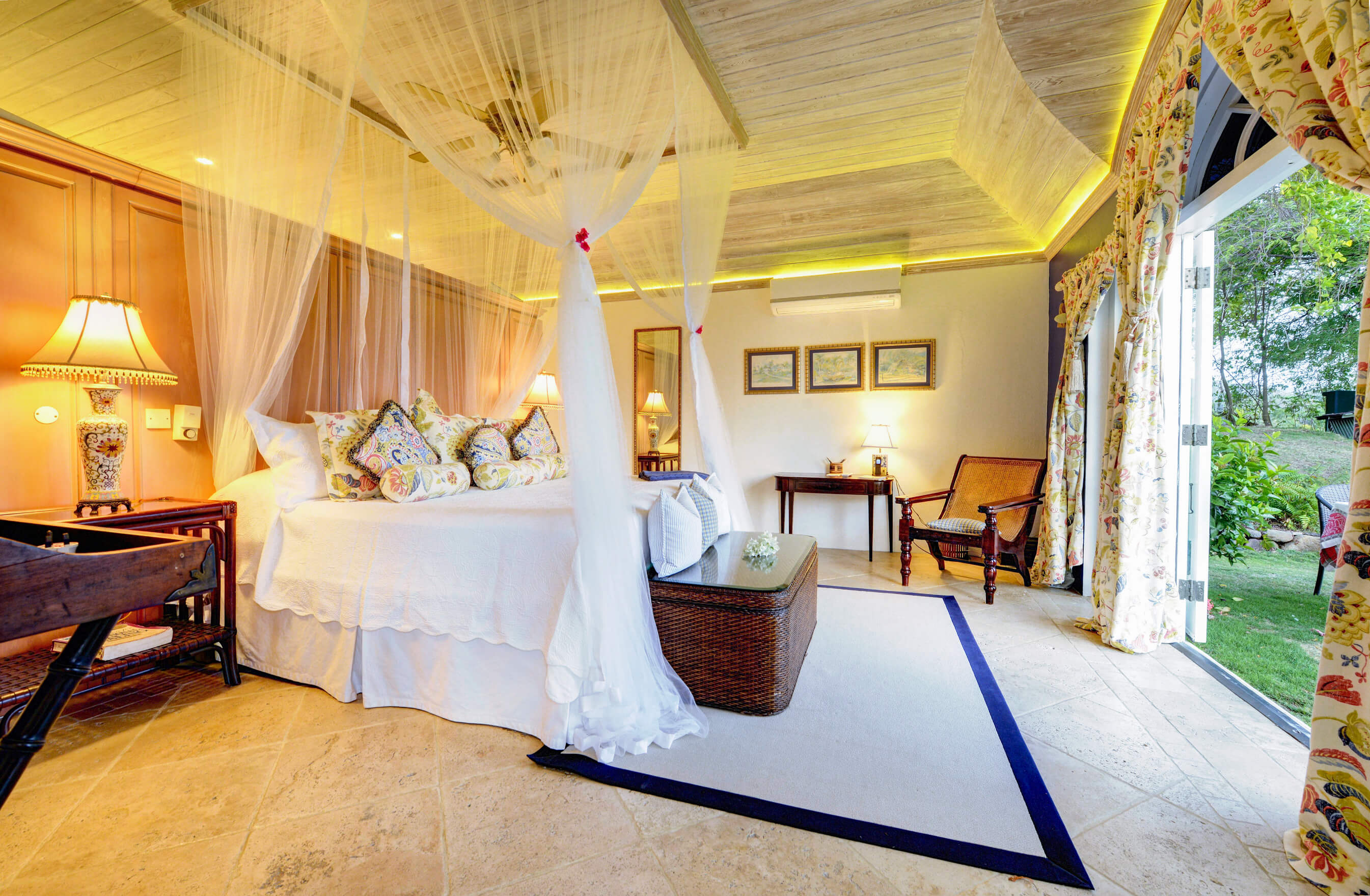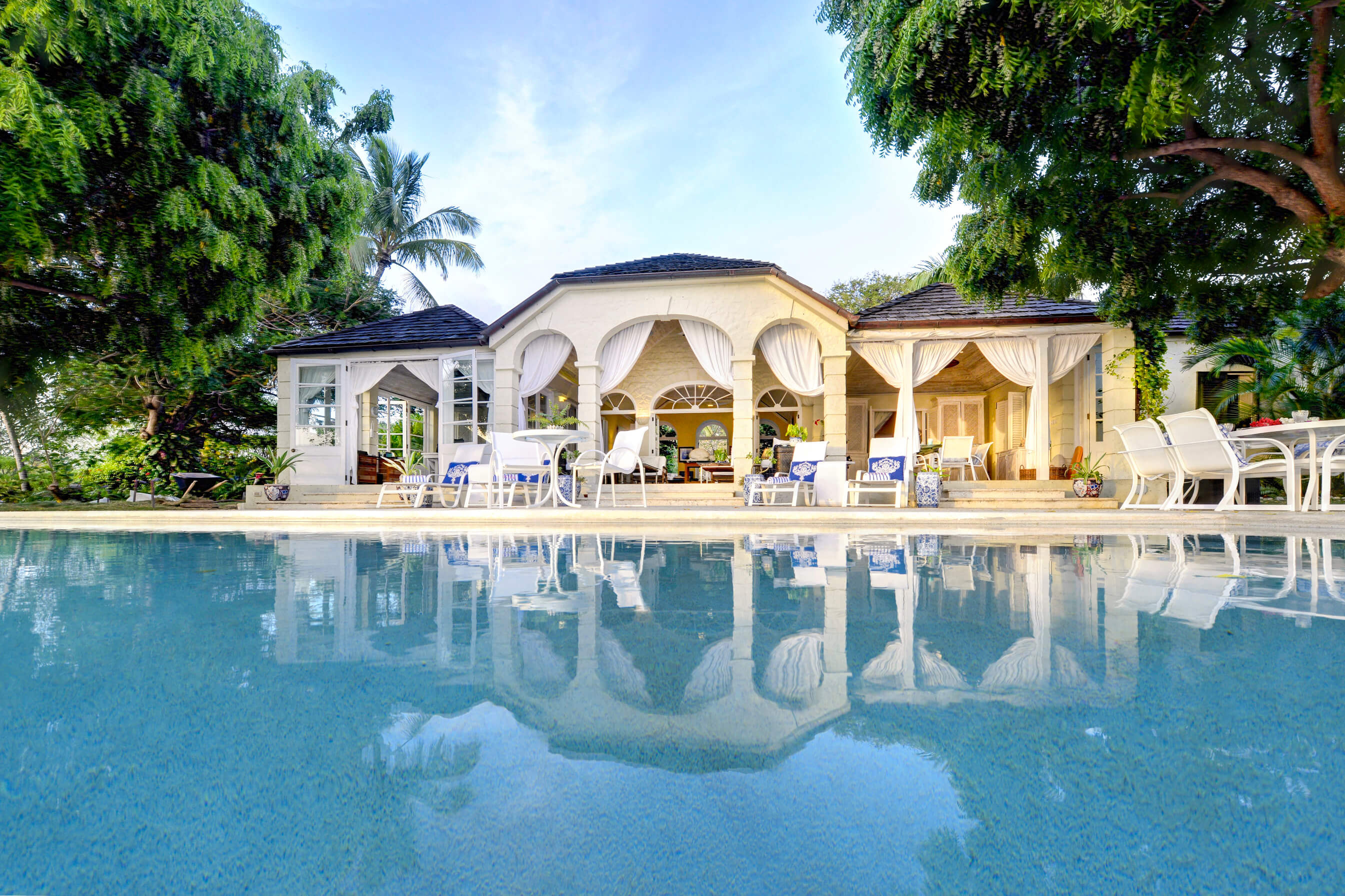 This fabulous Oliver Messel designed luxury villa sits slightly elevated on a gentle slope on Mustiques North Western coast right behind Endeavour Bay, adjacent to The Cotton House. Set amongst mature tropical gardens and tastefully furnished with a light and airy decor of creams and pale blue chintz, the villa has a classic, relaxed aura.