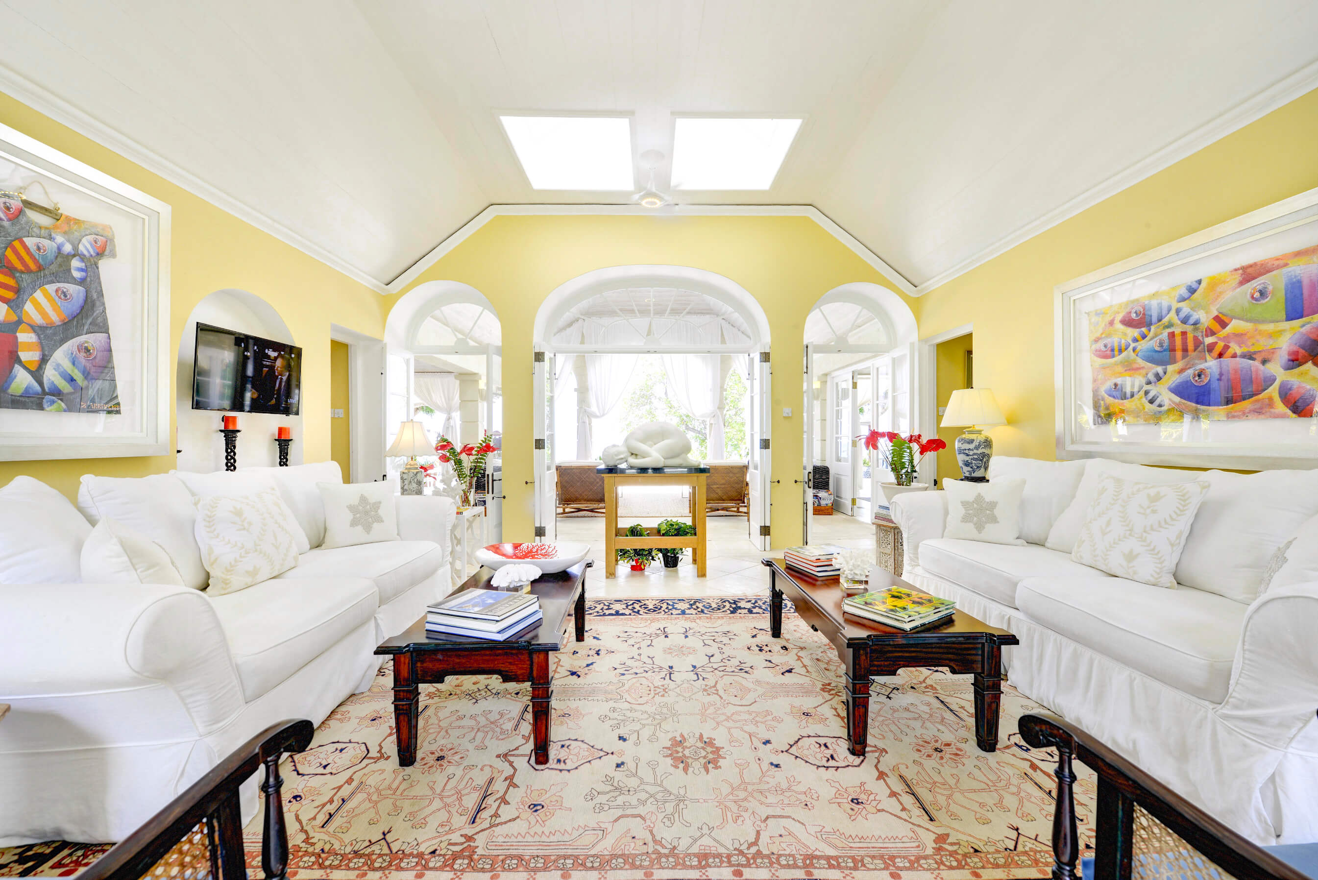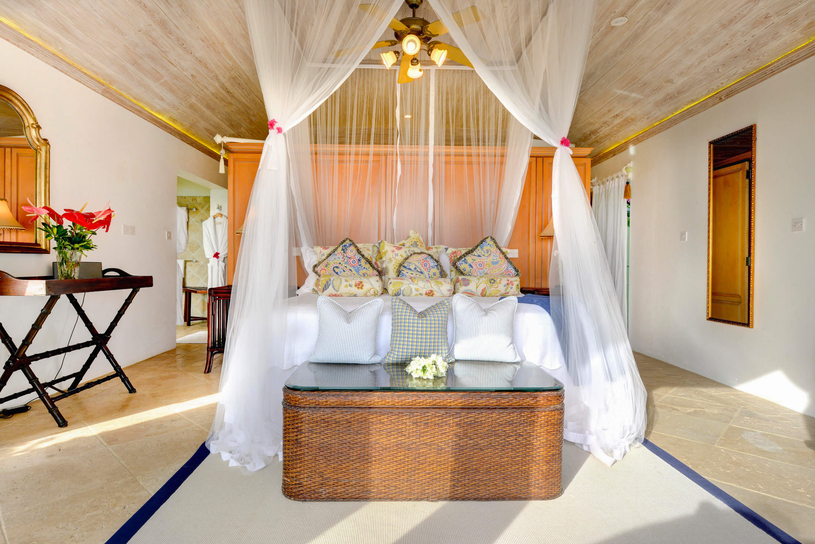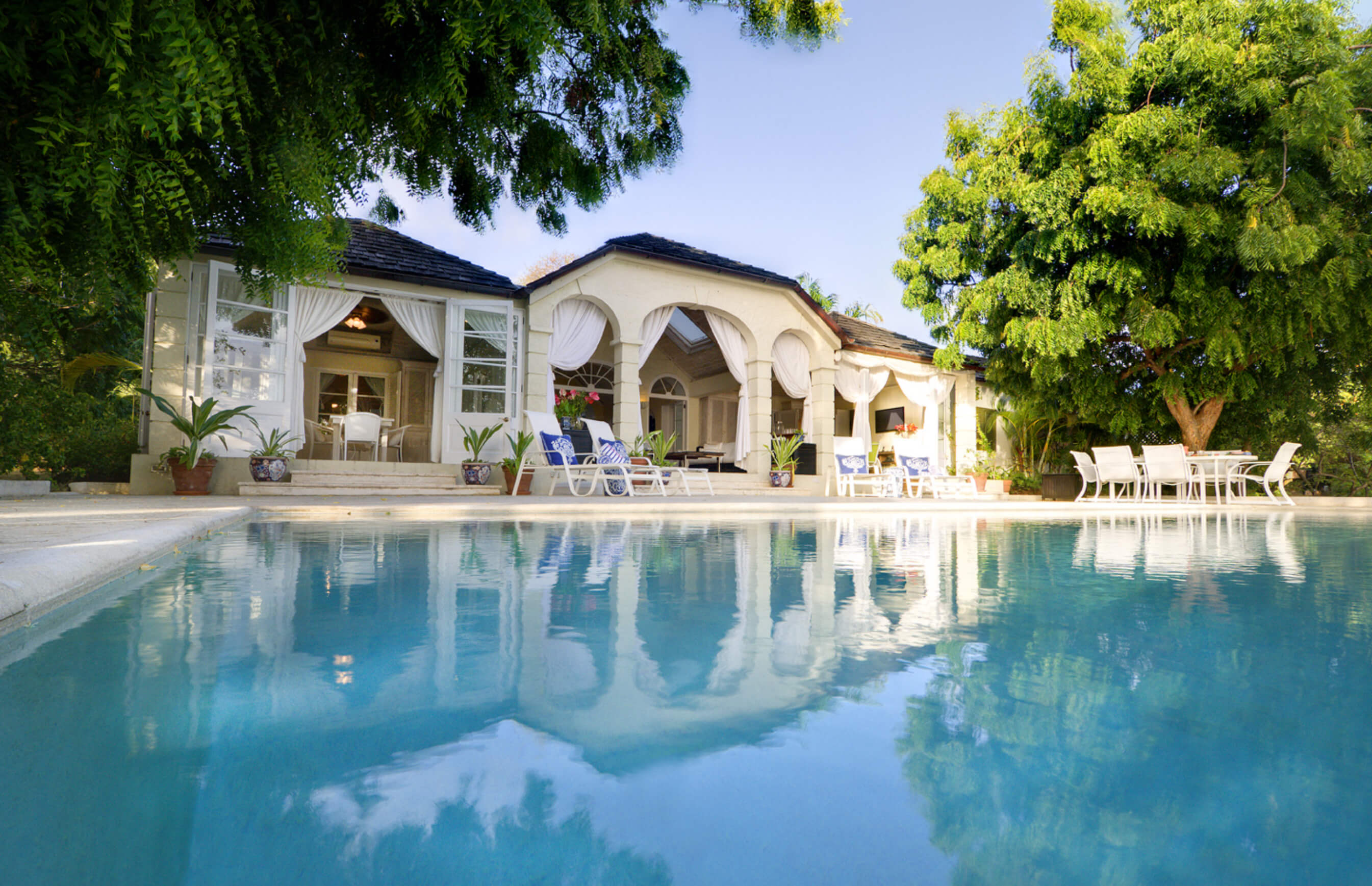 The stylish living room is located at the centre of the property, with impressive arched doors at either end leading onto an open verandah with both a family room and dining area, perfect areas to enjoy the expansive views in comfort. The central living space is flanked by two classically styled en suite bedrooms, furnished & tastefully decorated tastefully. The newer, seaside bedrooms, have simply wonderful views and the soothing rhythm of the Caribbean sea to enjoy.