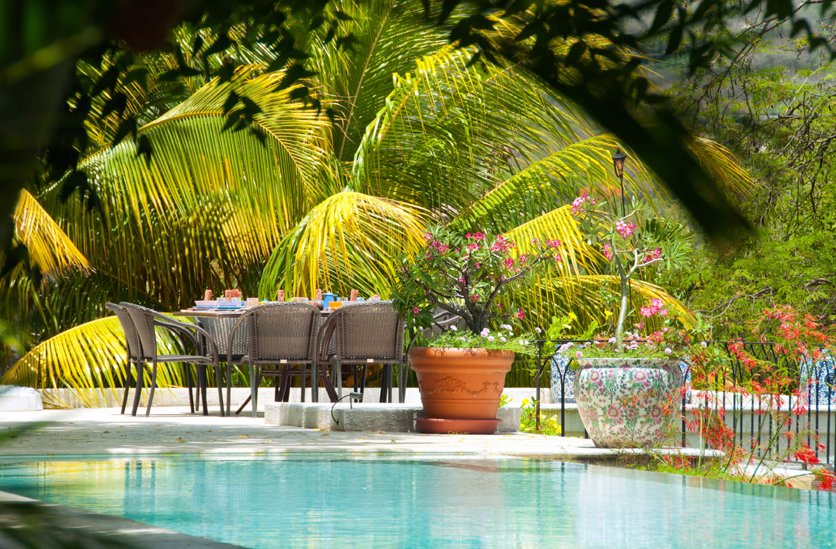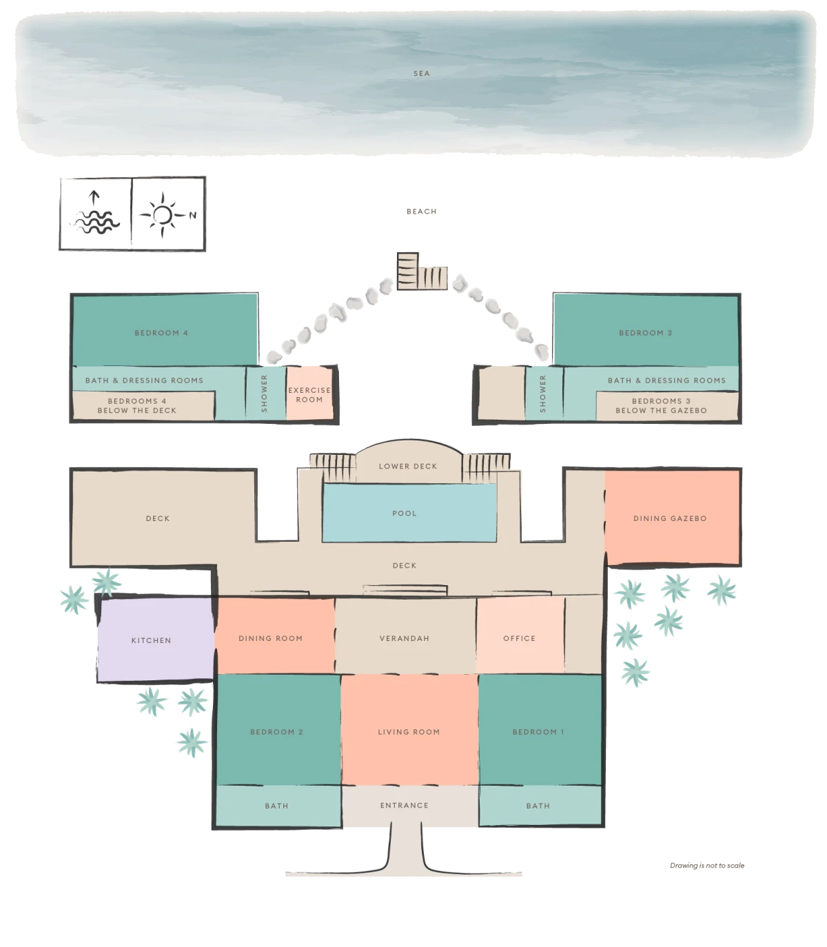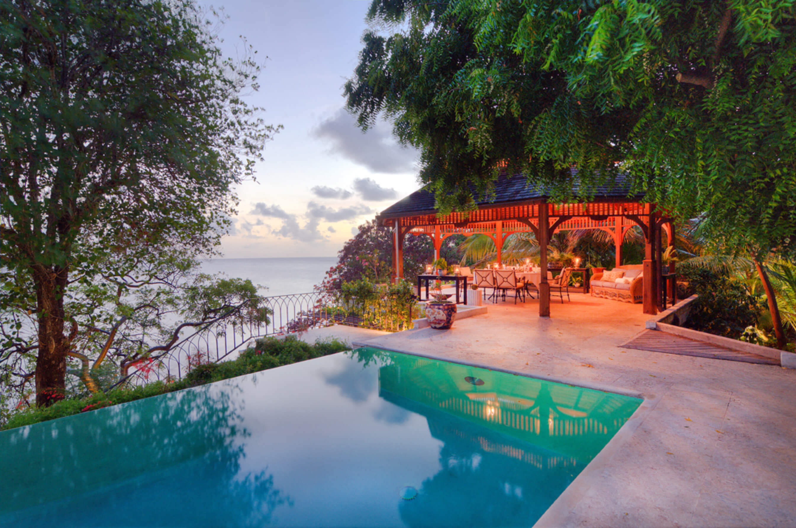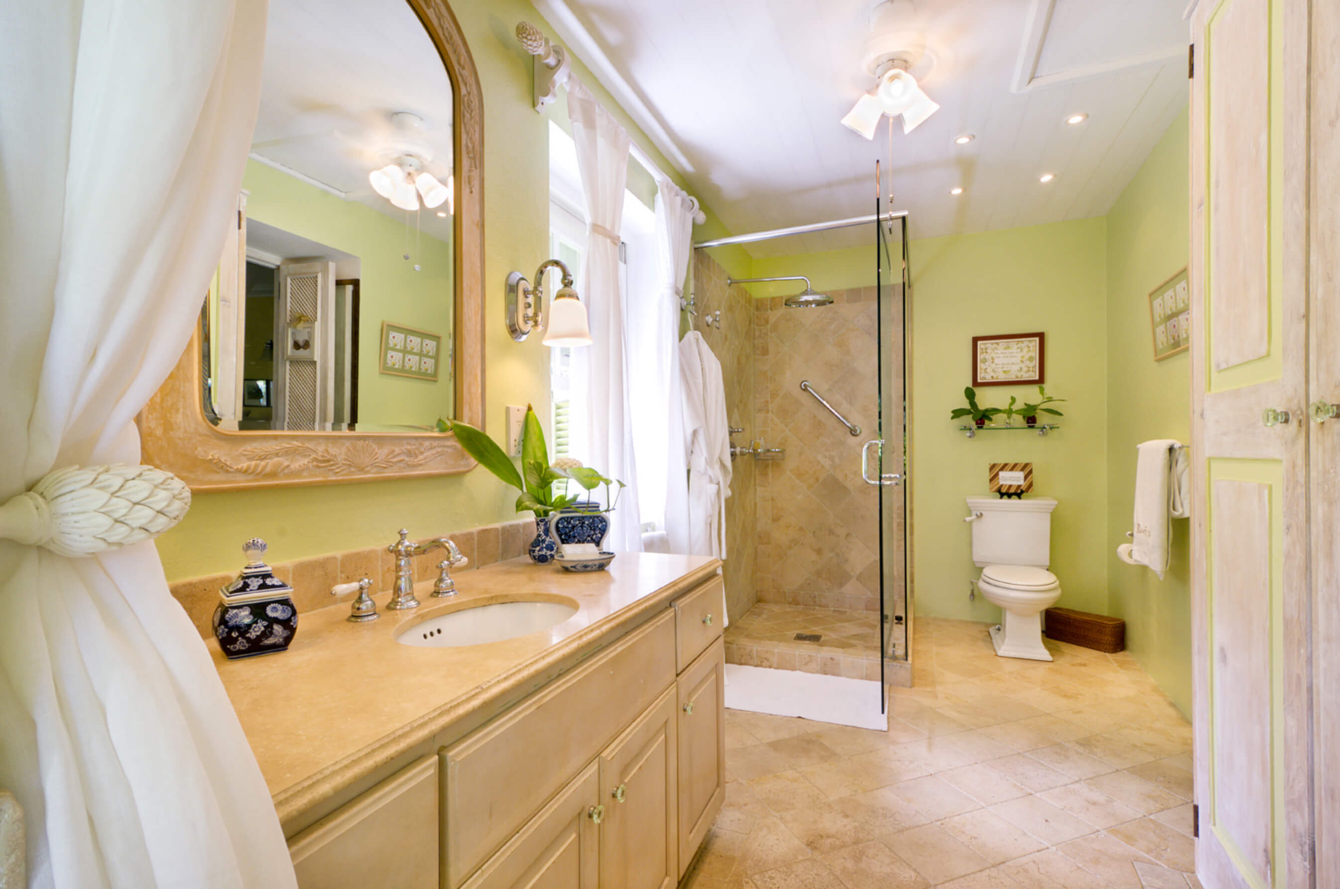 The stylish living room is located at the centre of the property, with impressive arched doors at either end leading onto an open verandah with both a family room and dining area, perfect areas to enjoy the expansive views in comfort. The central living space is flanked by two classically styled en suite bedrooms, furnished & tastefully decorated tastefully. The newer, seaside bedrooms, have simply wonderful views and the soothing rhythm of the Caribbean sea to enjoy.