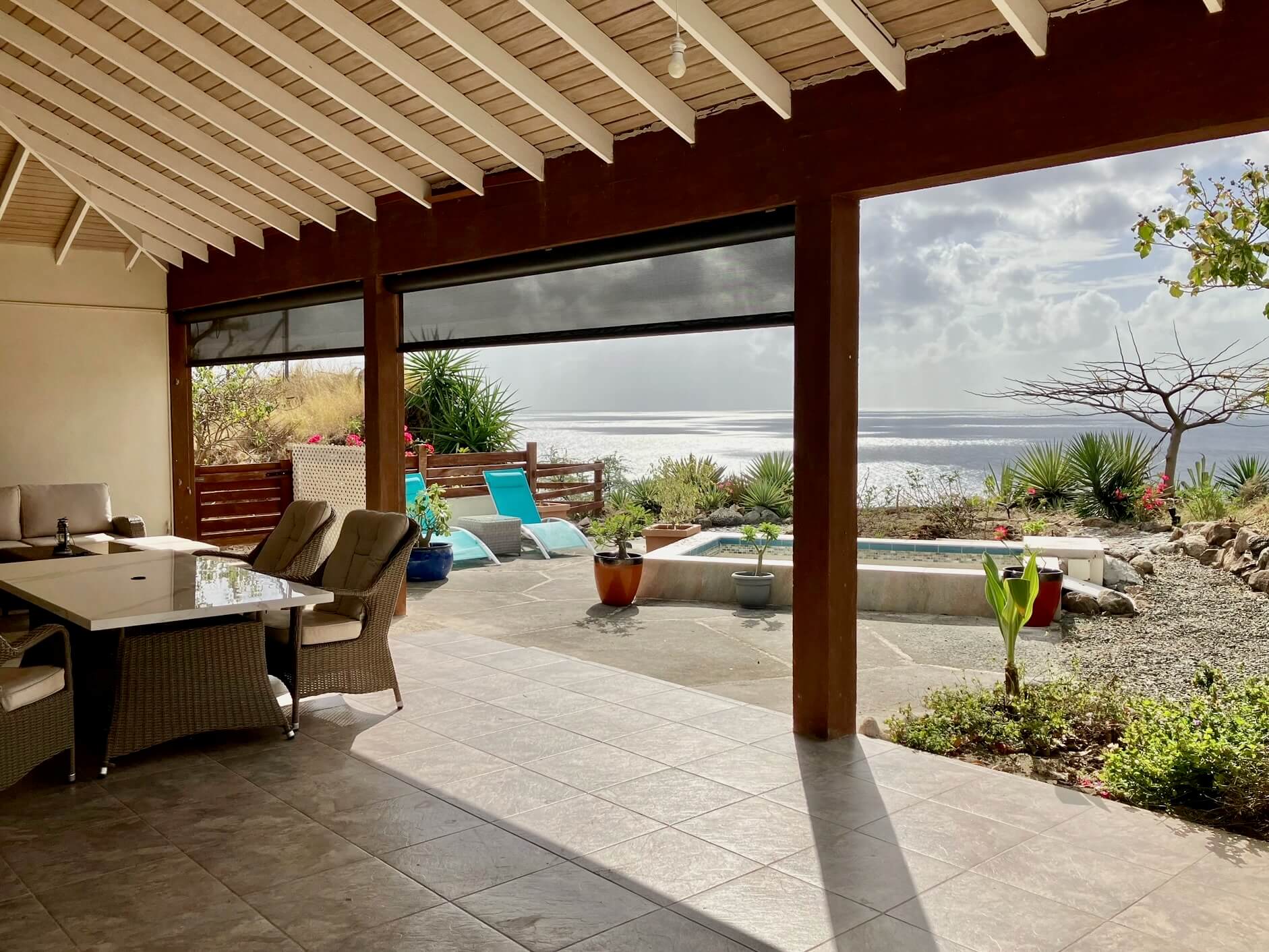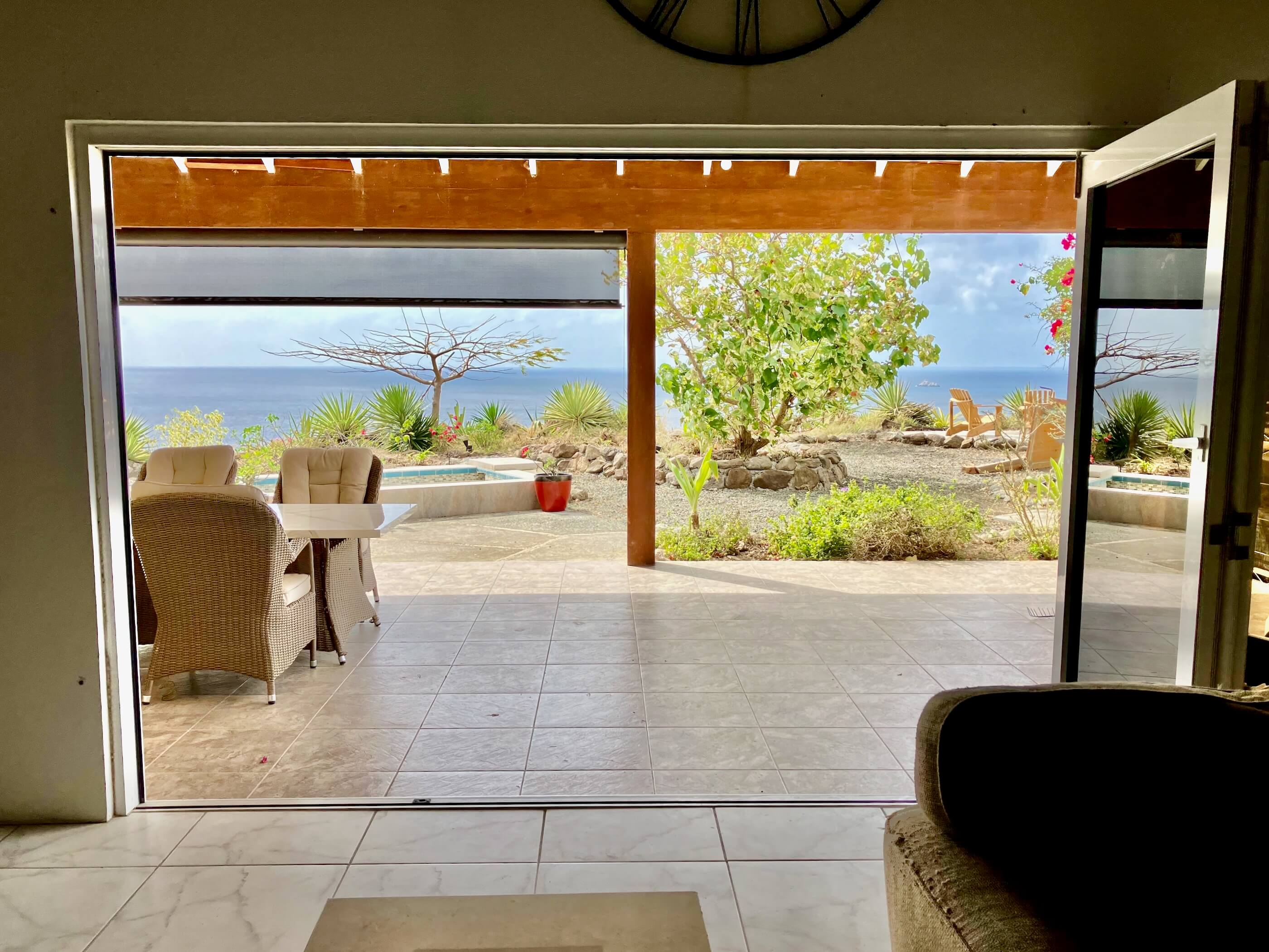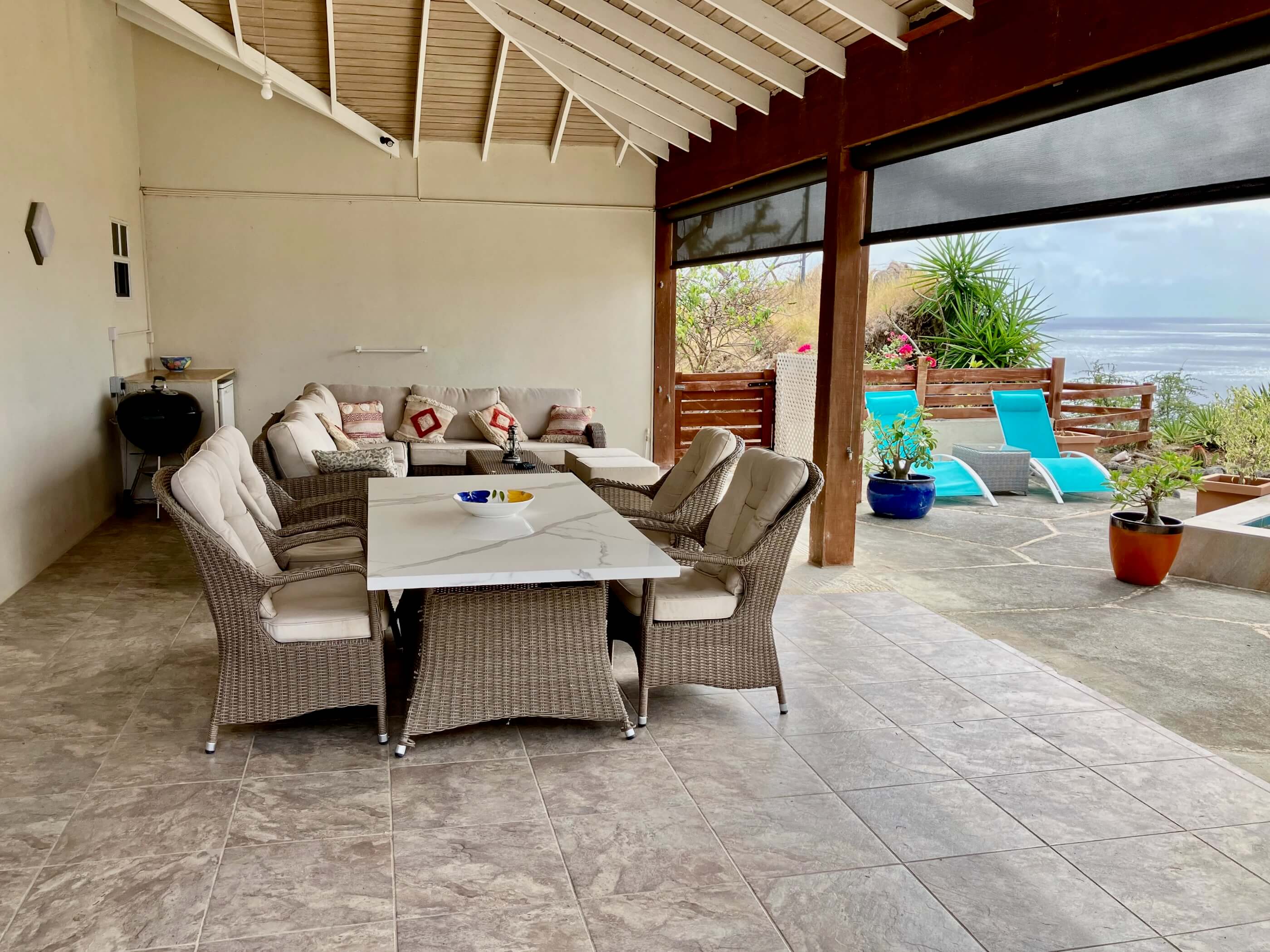 Castaways occupies approximately a quarter of an acre within tranquil Hermitage, but is within walking distance of Tyrell Bay harbour, with its fine yacht anchorage and nearby award-winning beaches. The hilltop location of the property affords spectacular panoramic island views both east and west, with year round cooling breezes and serenity.