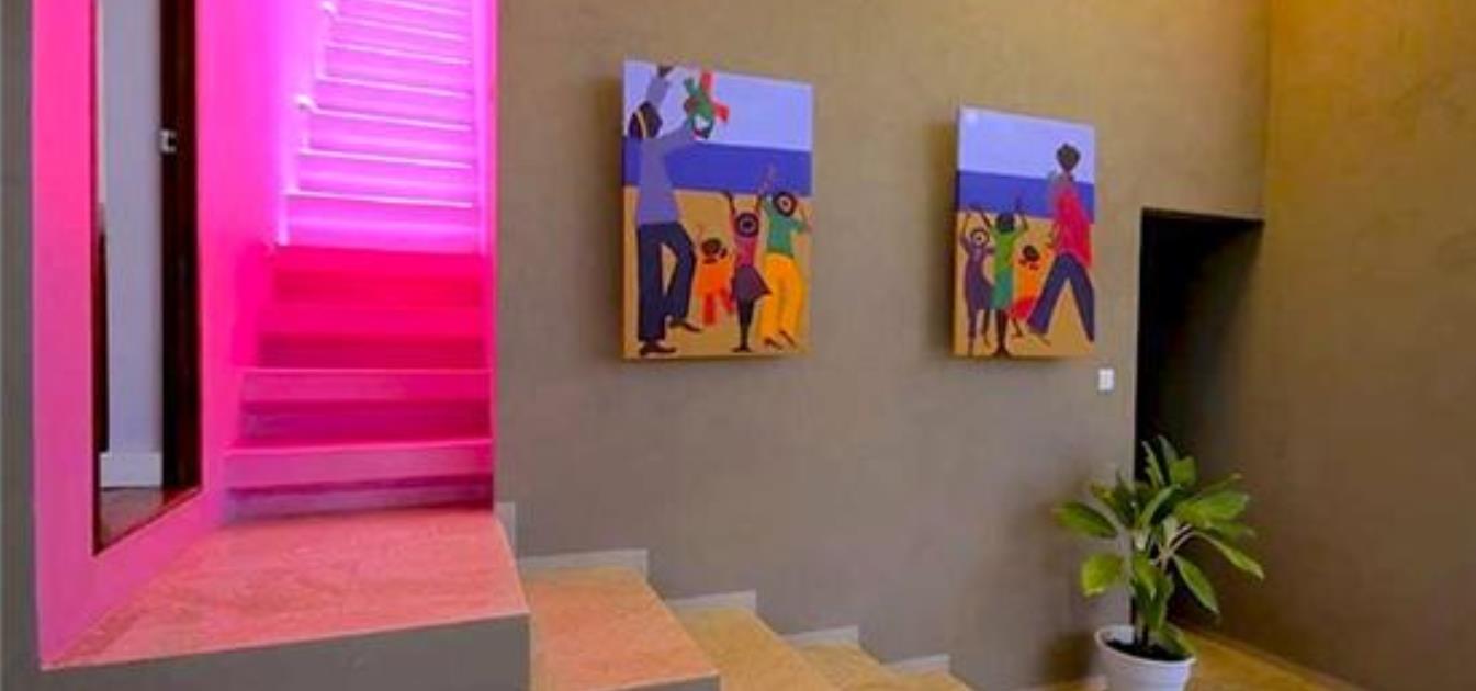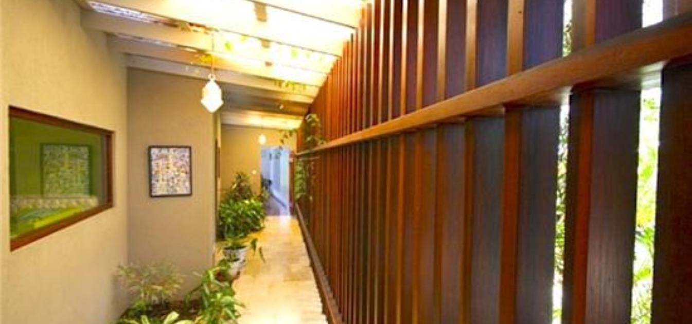 The north wing contains the double garage, workroom and laundry room. Between the two is an outstanding 1,000 square foot living area with a 17-foot high ceiling, wrapped by glass, giving a truly indoor/outdoor living experience. The staircase leads up to a rooftop terrace. The south wing houses the media room and four ensuite bedrooms, including the master room which overlooks the ocean and faces the sunset. The childrens bedroom has been imaginatively decorated as have the living spaces, media suite and home office.